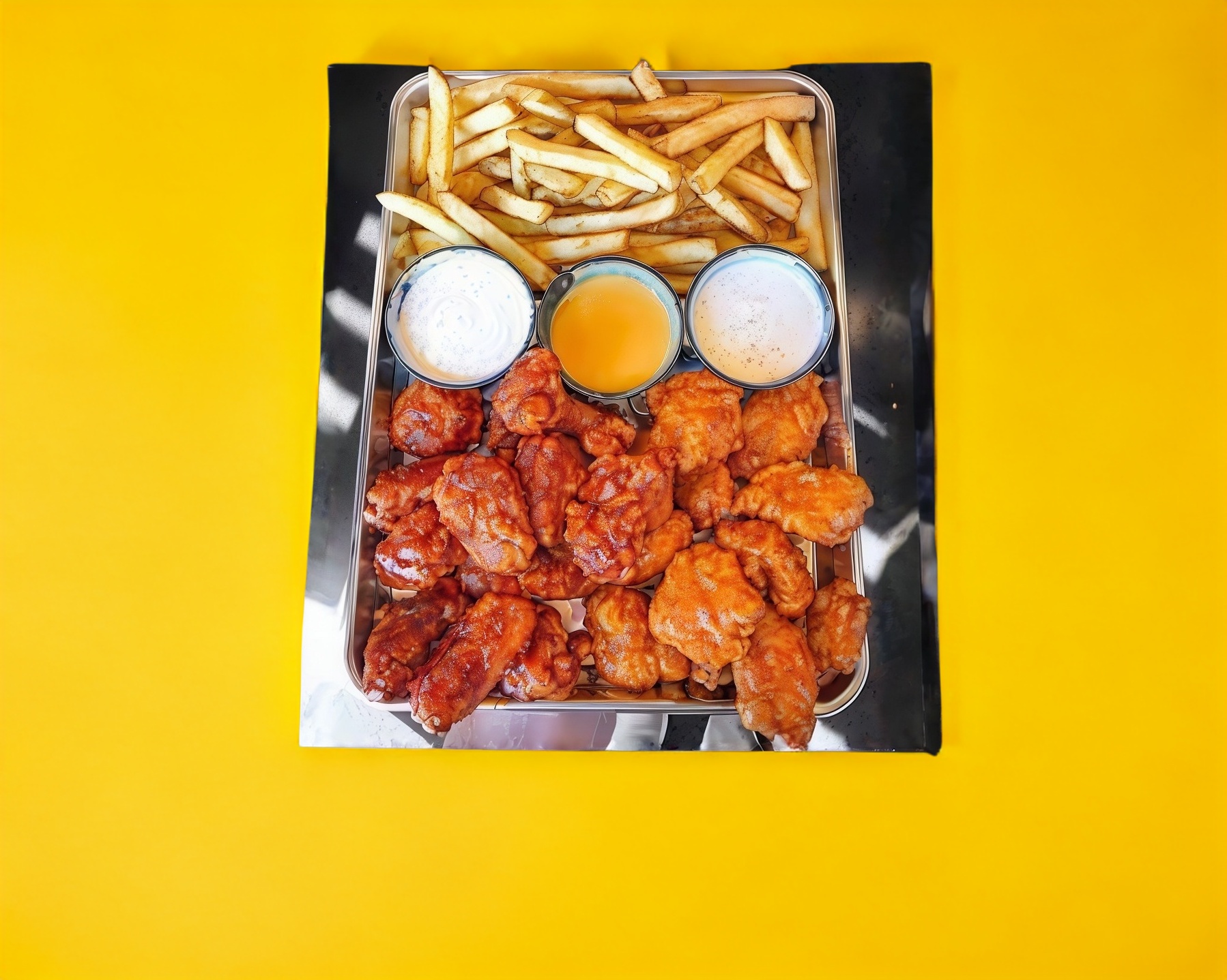 Sazonadas con la salsa de tu elección. Acompañas de papas y aderezo