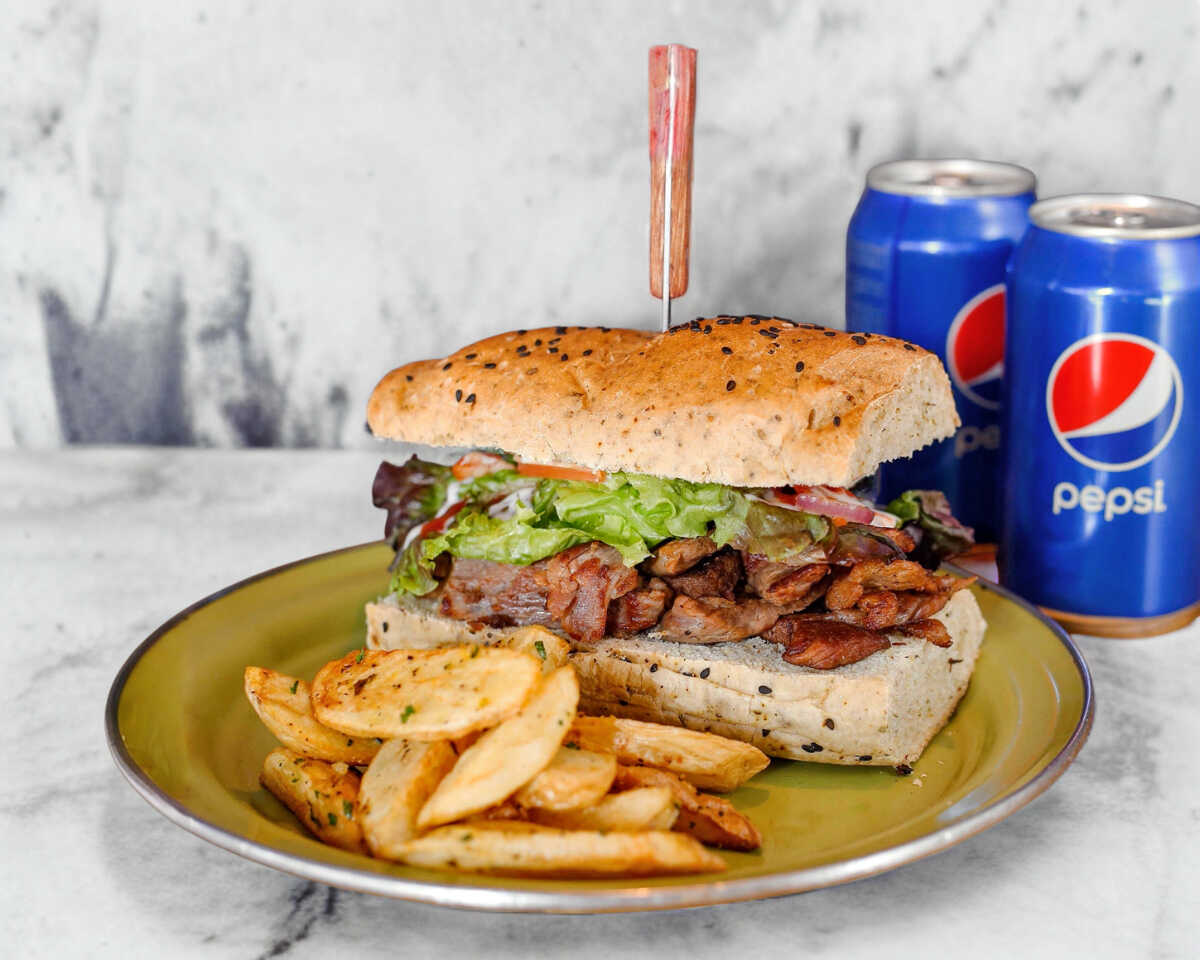 Carne de res y arrachera 100% de la casa,pan artesanal, vegetales frescos, chorizo, queso mozarella y panela