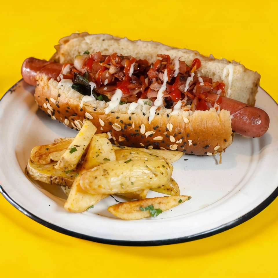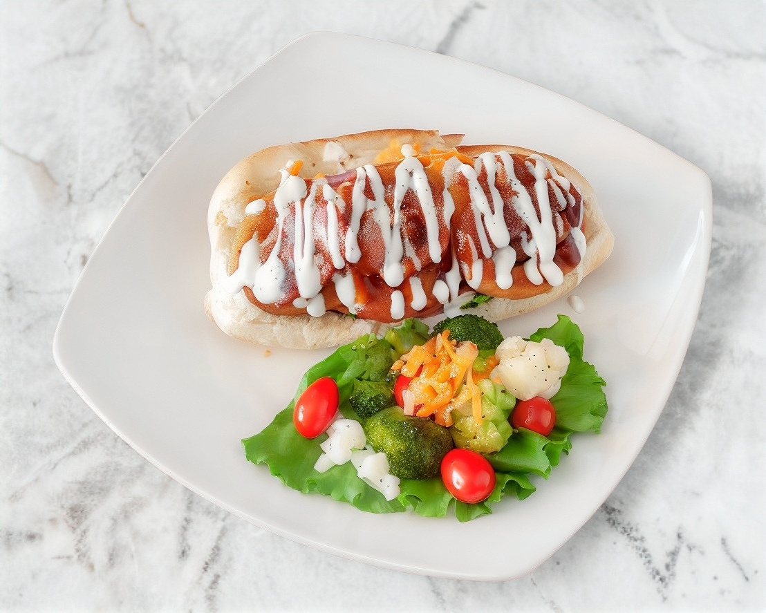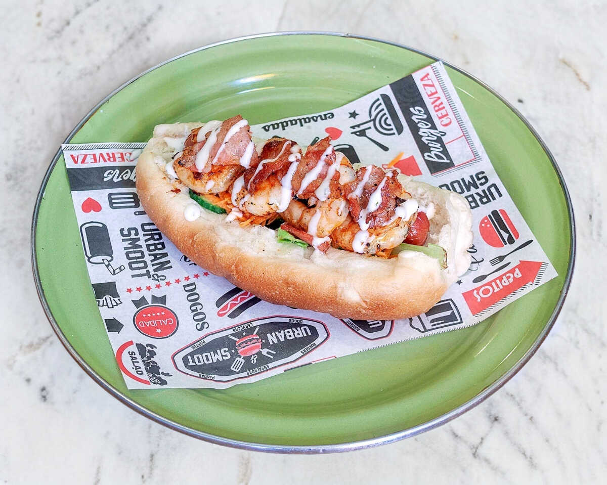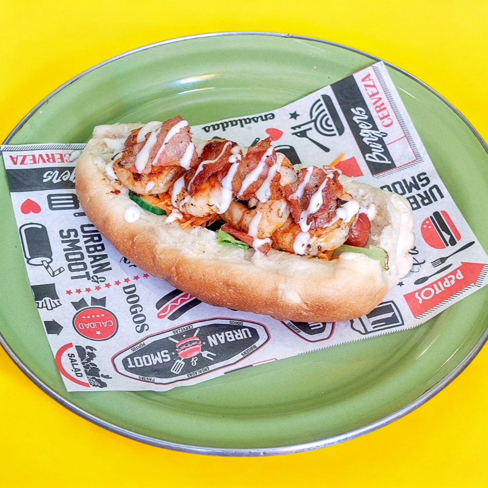 pan tradicional suave y doradito, salchicha jugosa, crujiente tocino, queso fundido, aros de cebolla dorados y un toque irresistible de salsa BBQ casera.