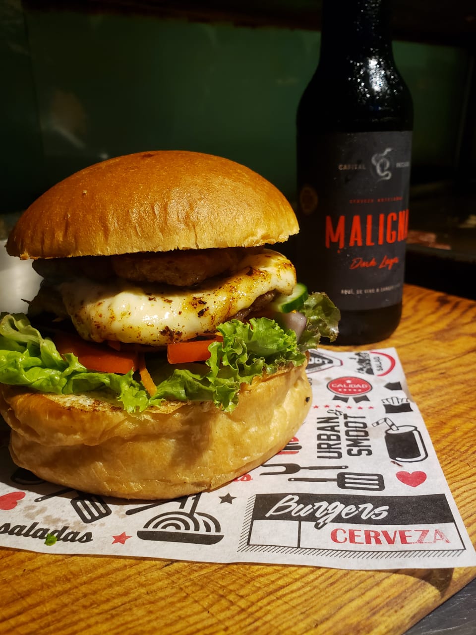 Elaborada con pan artesanal, vegetales frescos del dia, queso, doble carne de res y especias