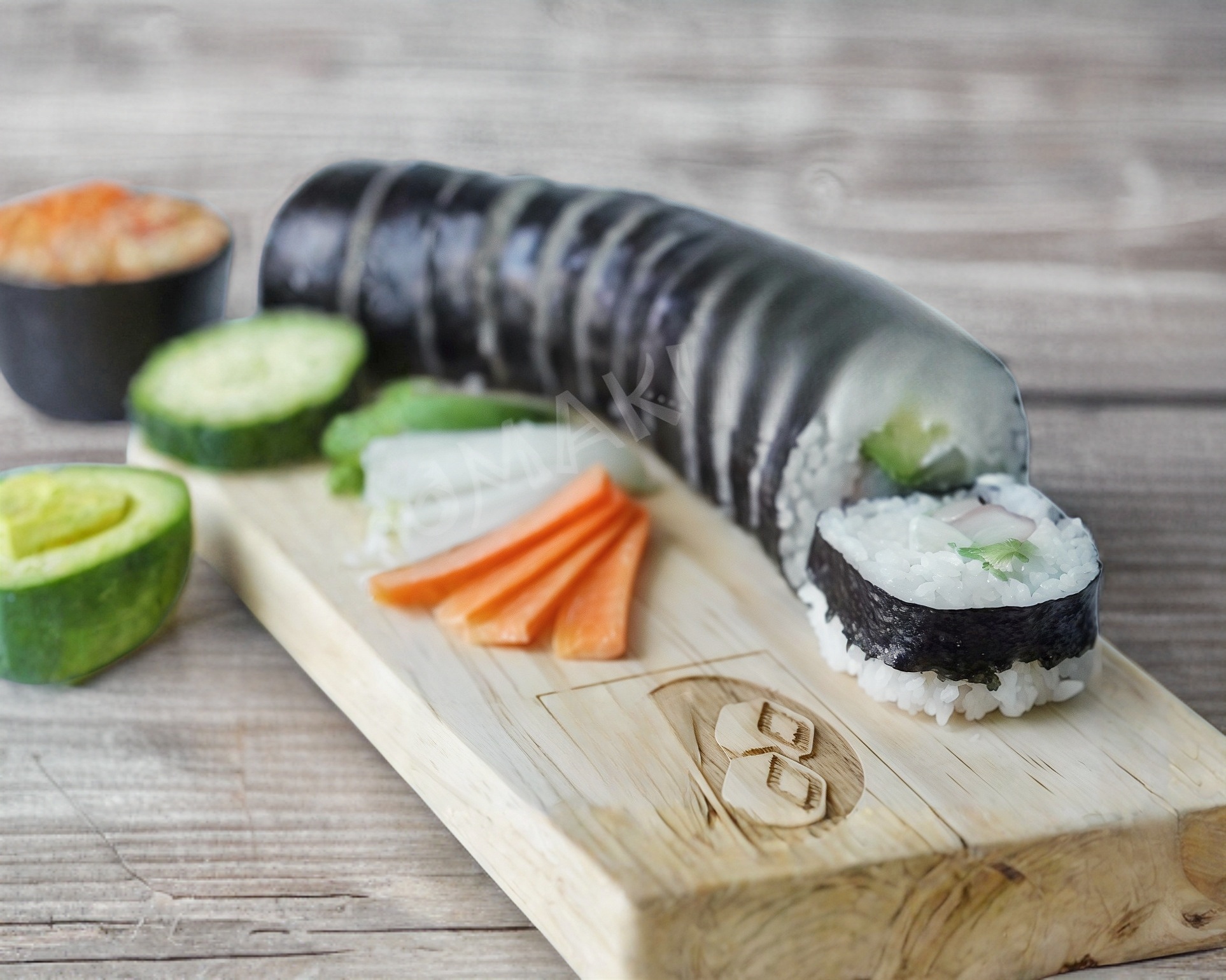 Sushi alga por fuera, proteína a elegir, relleno de aguacate, zanahoria, philadelphia y pepino.