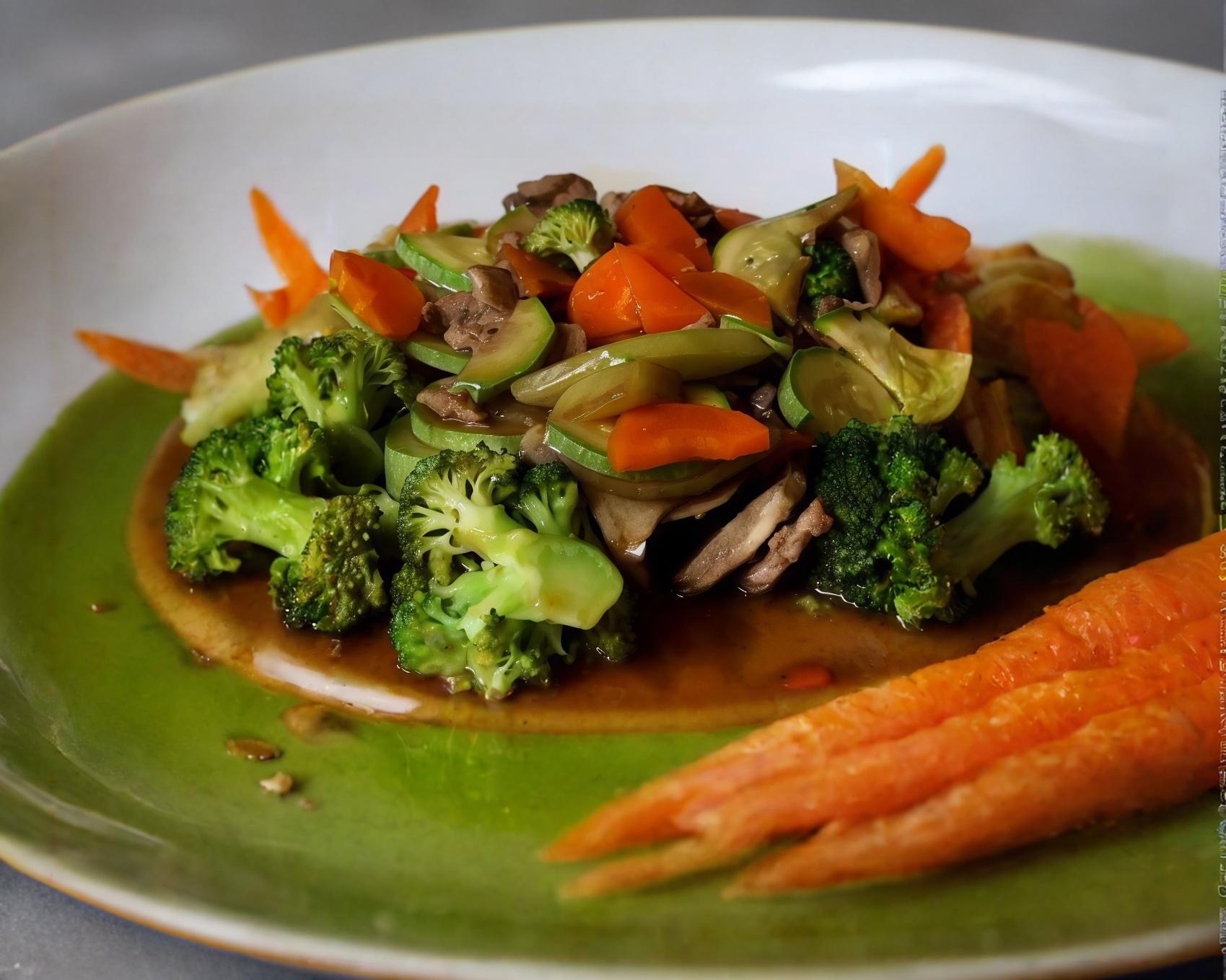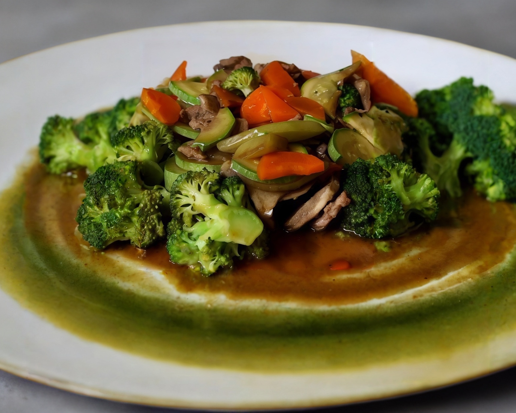 Verduras a la plancha con un toque de salsa teriyaki acompañadas con una cama de arroz al vapor y la proteína de su elección.