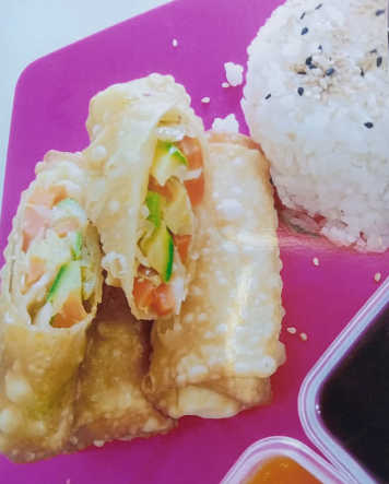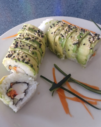 Pepino, alga, zanahoria, aguacate y queso crema.