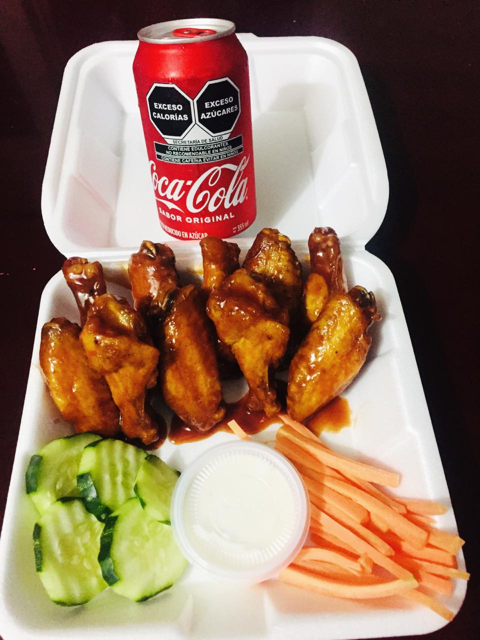 10 alitas, papas francesa y refresco.