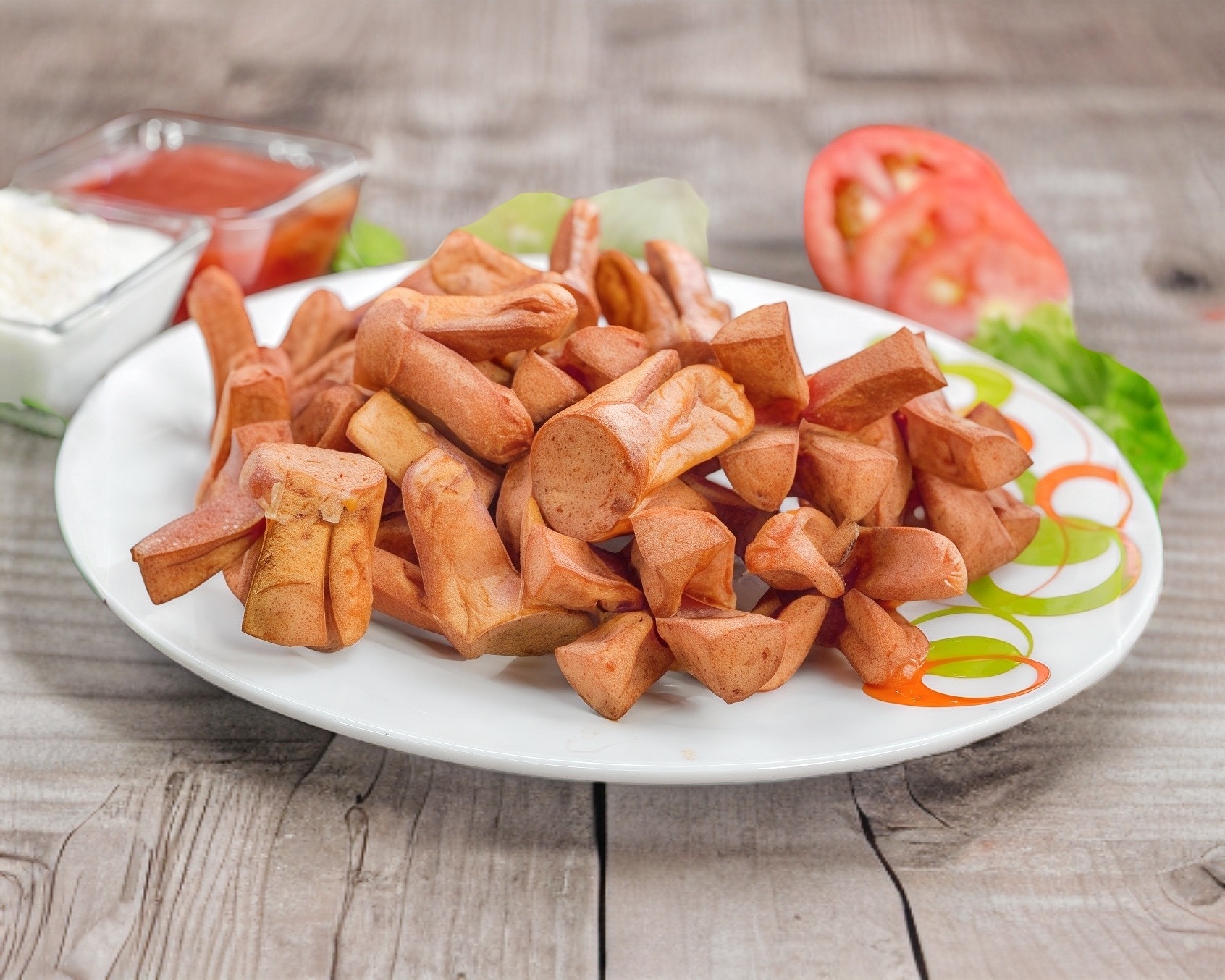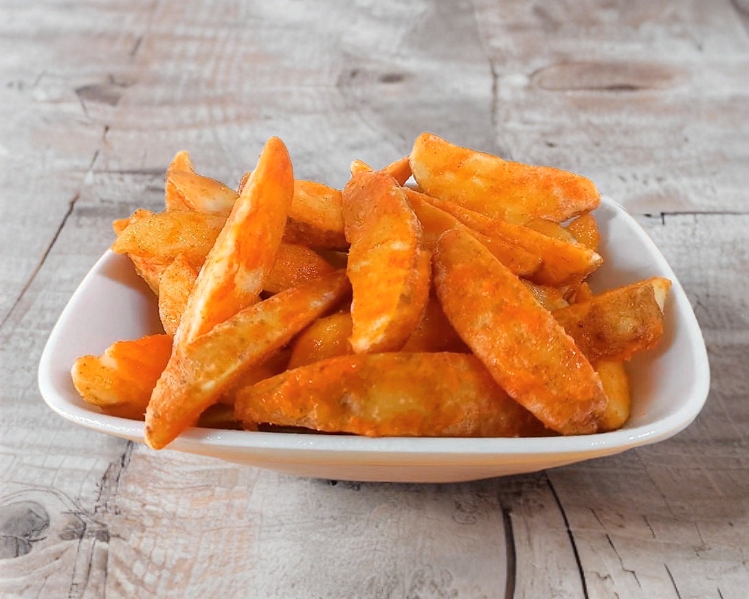 Deliciosos boneless de pollo bañados en salsas a elegir acompañados de papas fritas