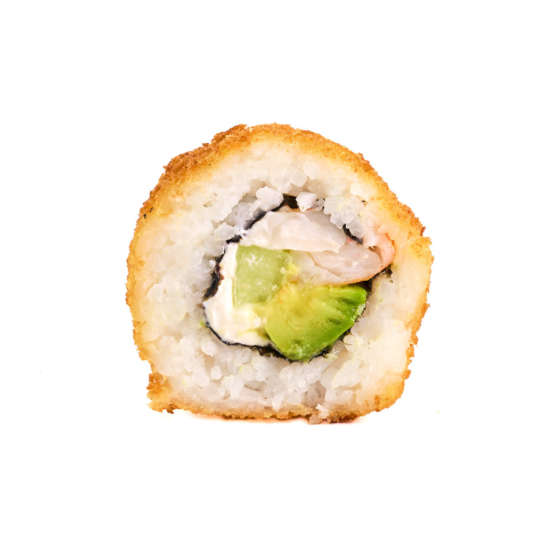 Empanizado por fuera, por dentro pepino, queso philadelphia, aguacate y proteína a elegir.