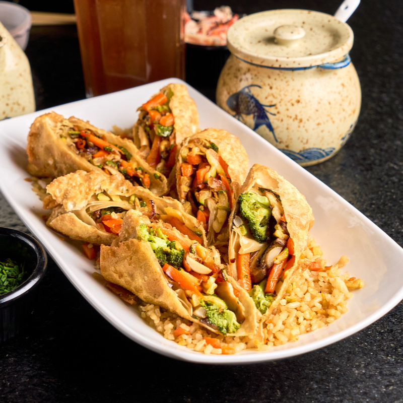 3 Rollos primavera con arroz frito.