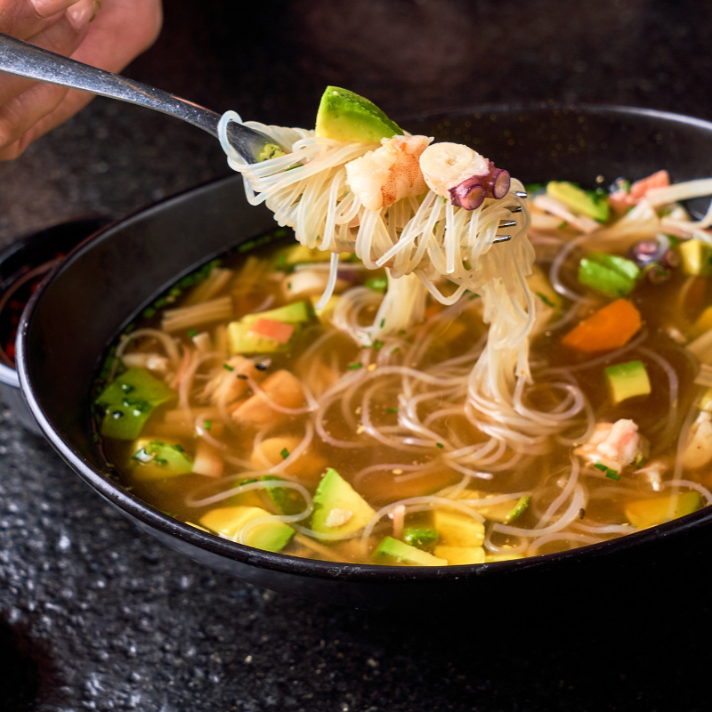 CAMARÓN, PULPO, VEGETALES Y FIDEO DE ARROZ
