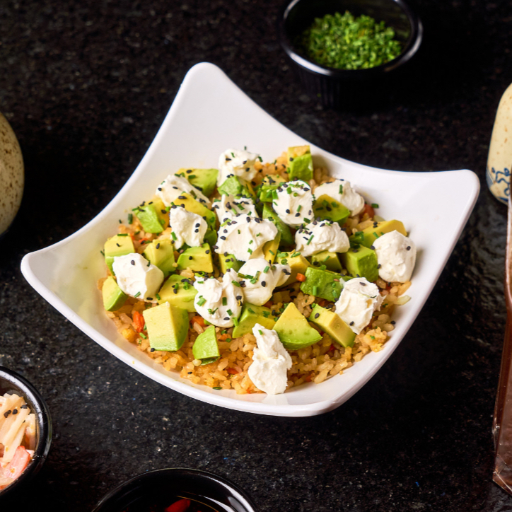 Arroz frito con aguacate y queso philadelphia.