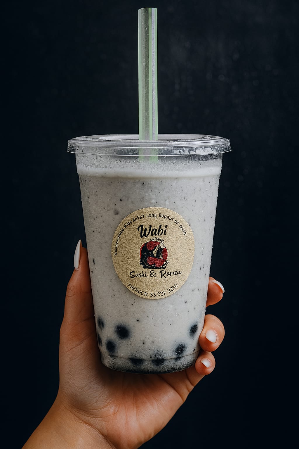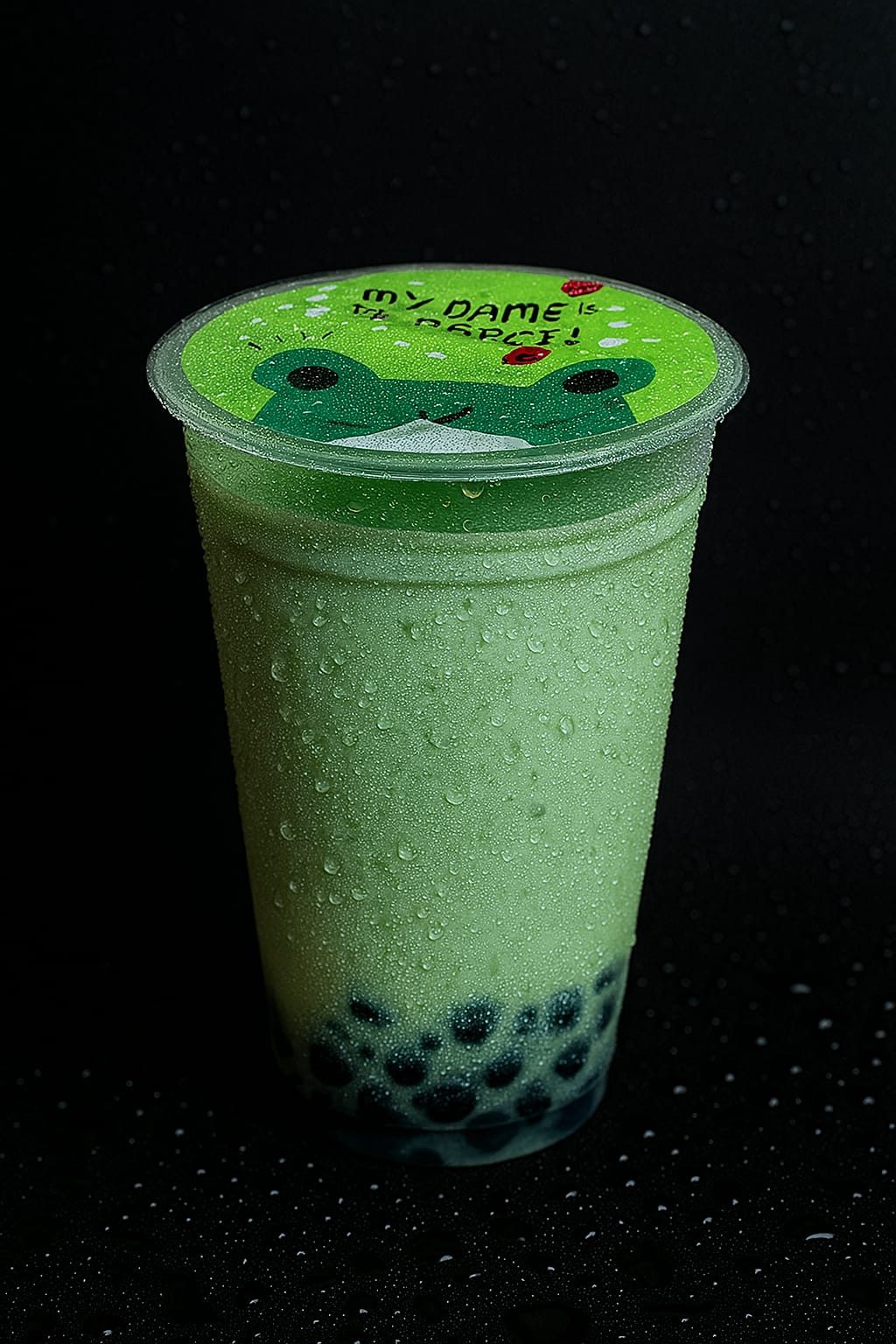 Deliciosas perlas de tapioca en refrescante bebida frapeada sabor matcha base leche deslactosada.