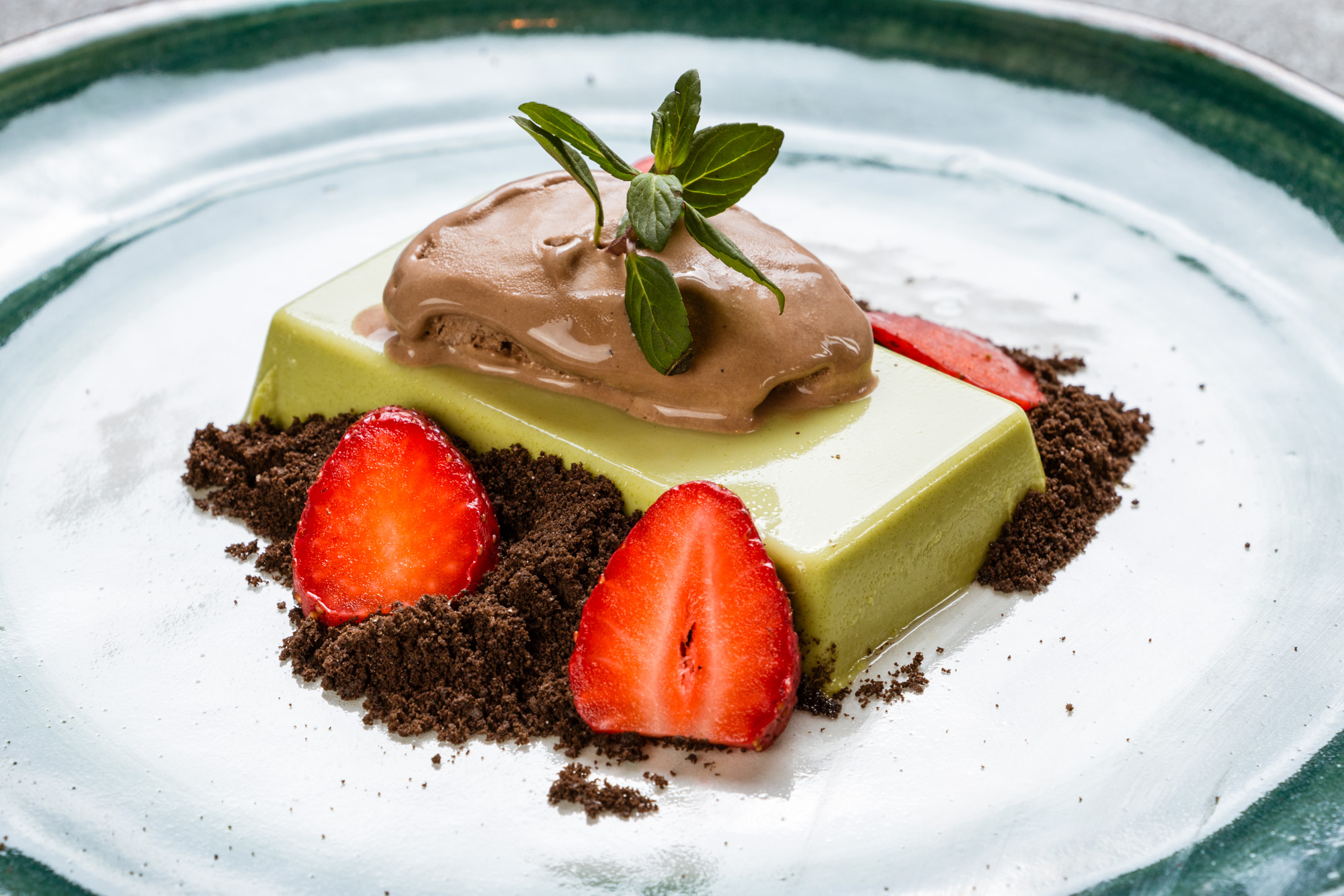 Panacota de Matcha con Nieve de Chocolate
