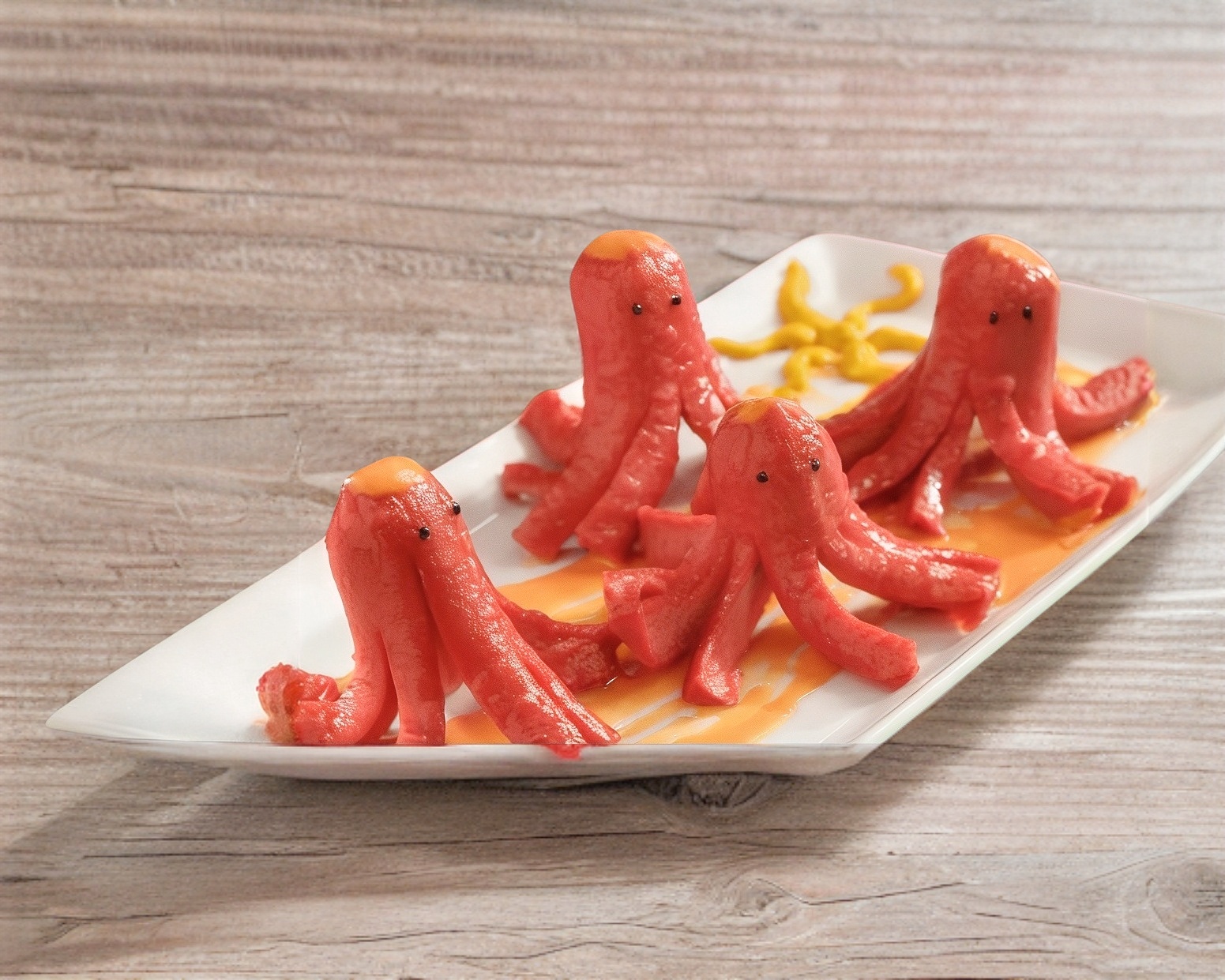 Salchichas de Pavo Fritas al Punto Crujiente Cortada en Forma de Pulpo.