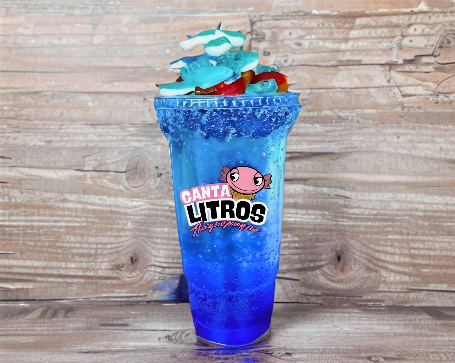 Refrescante preparado de mora azul acompañado de mix de gomitas