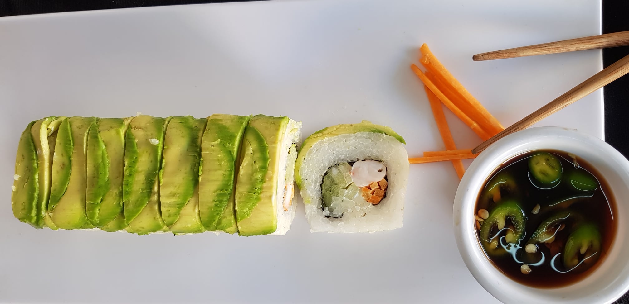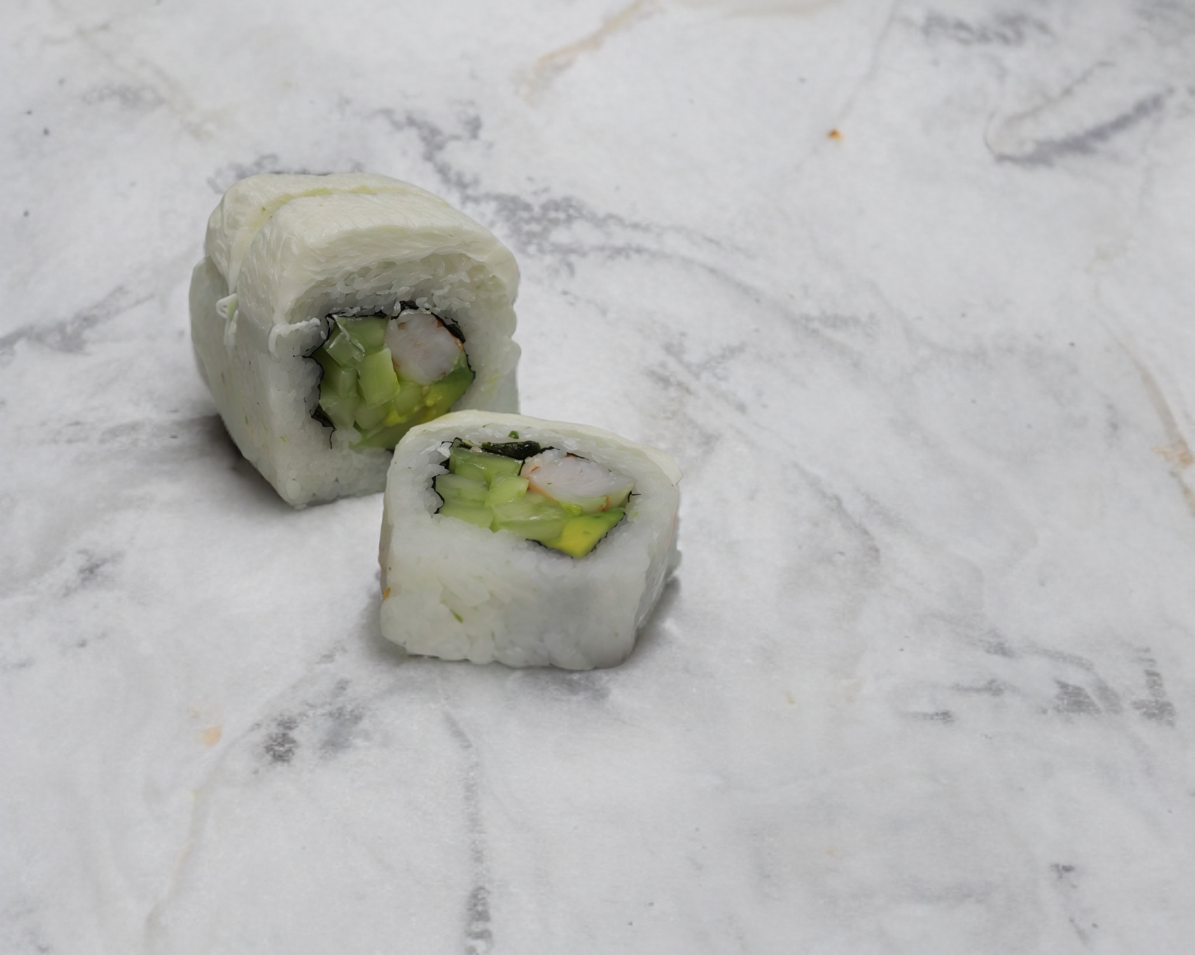 Por fuera queso phila y kanikama, por dentro queso pepino y aguacate.