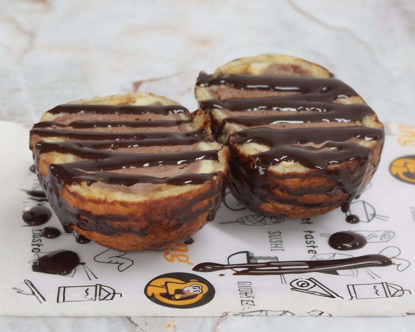 por fuera empanizado y topping de tampico, por dentro queso pepino y aguacate.
