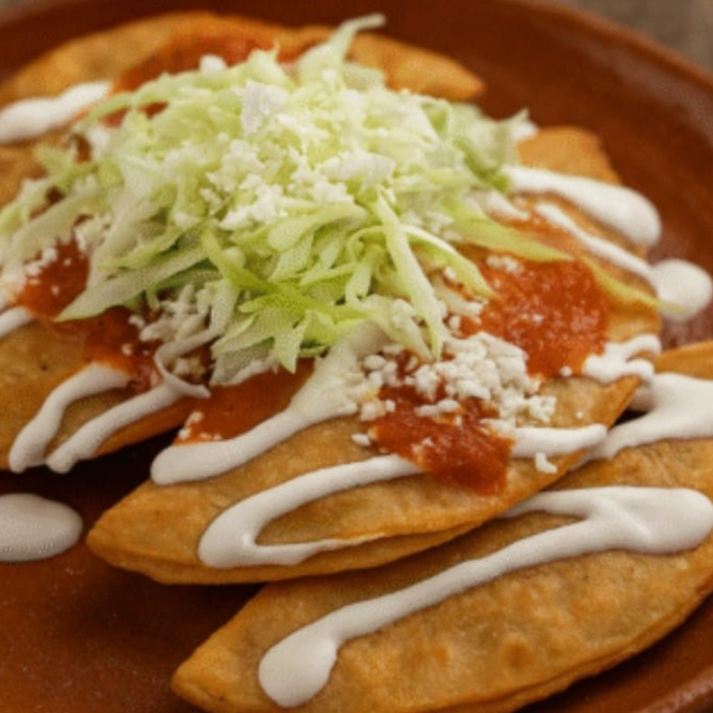 quesadilla frita, lechuga y salsa.