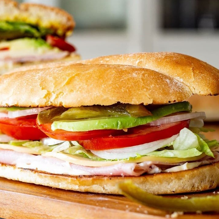 jamon, lechuga, jitomate, cebolla, aguacate, jalapeño.