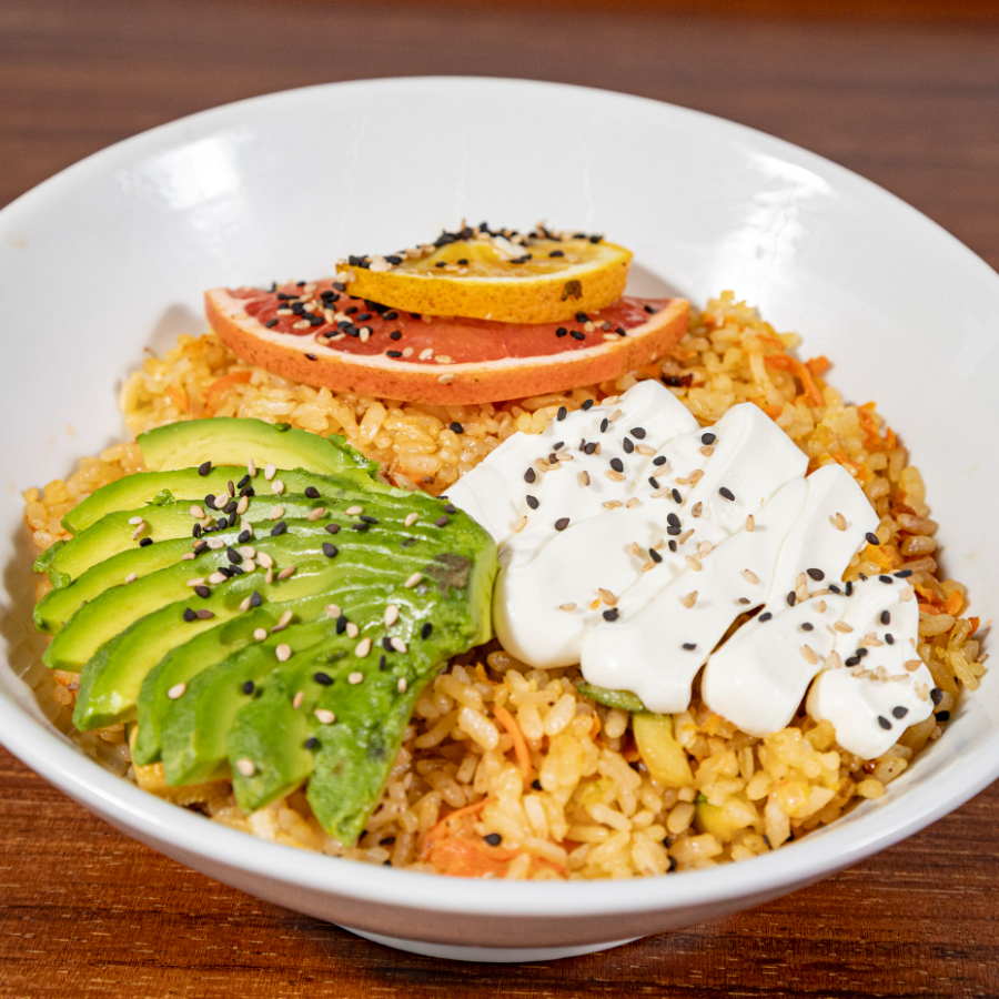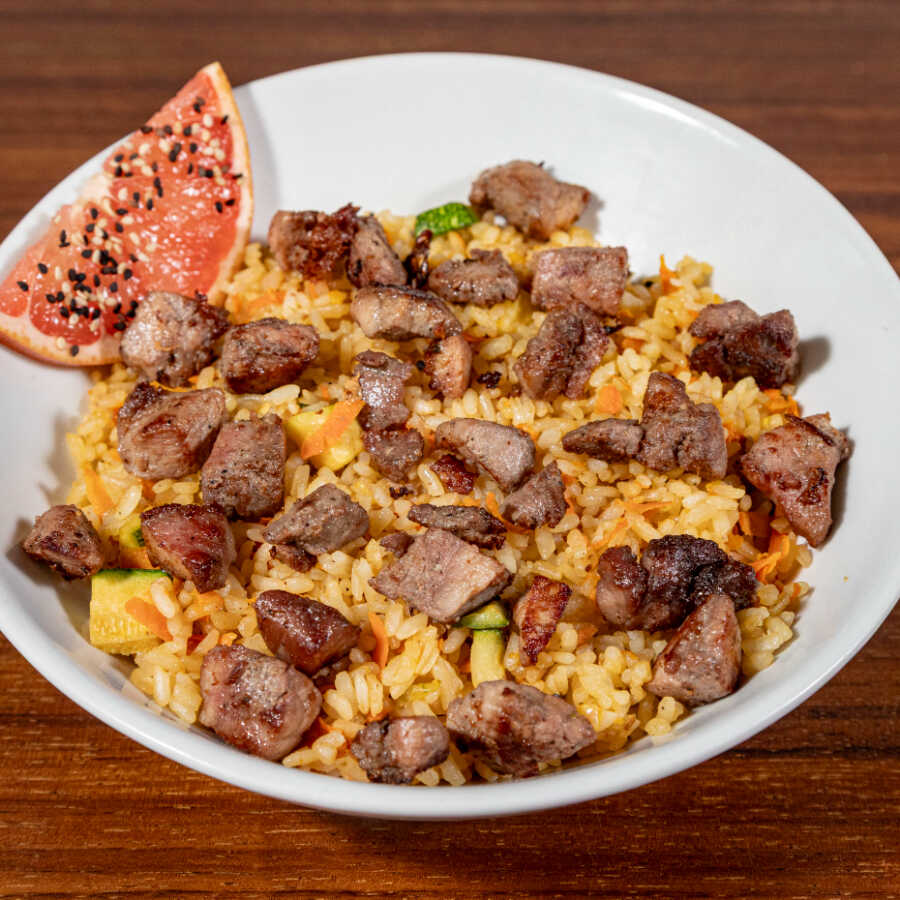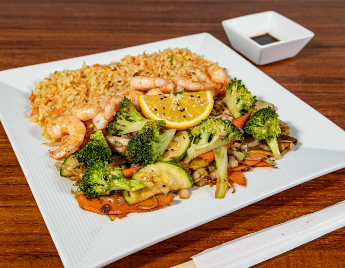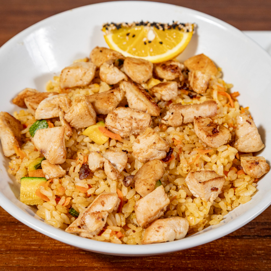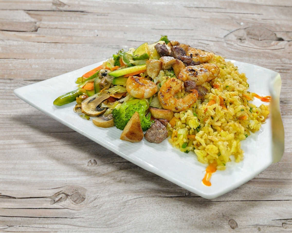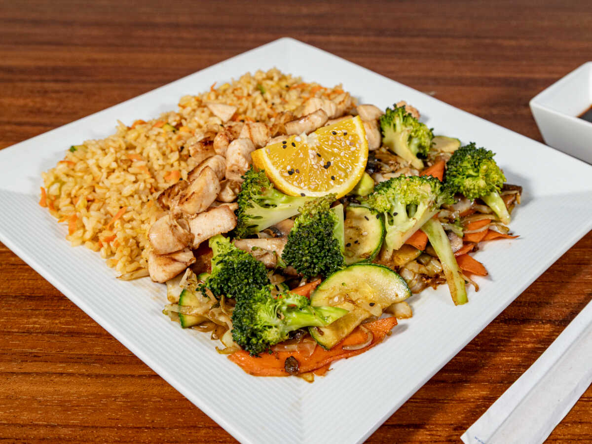 Verduras a la plancha, acompañadas de tu proteína favorita y una guarnición de arroz frito.