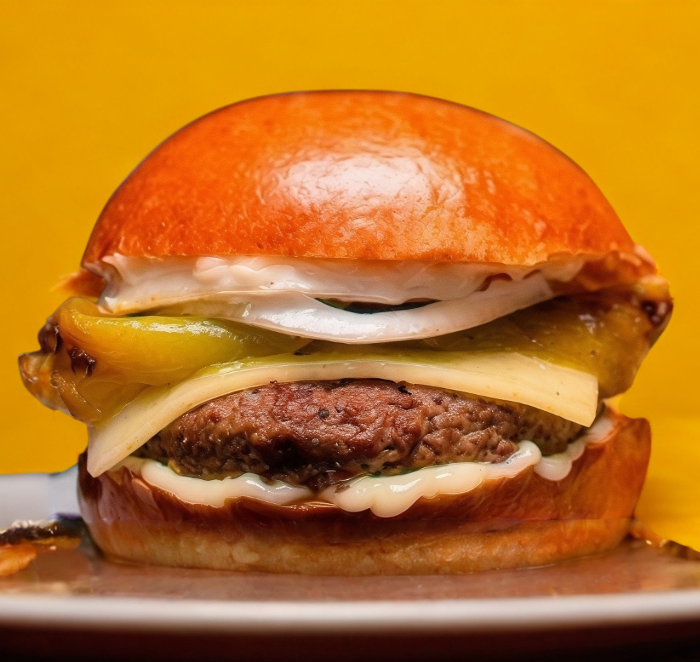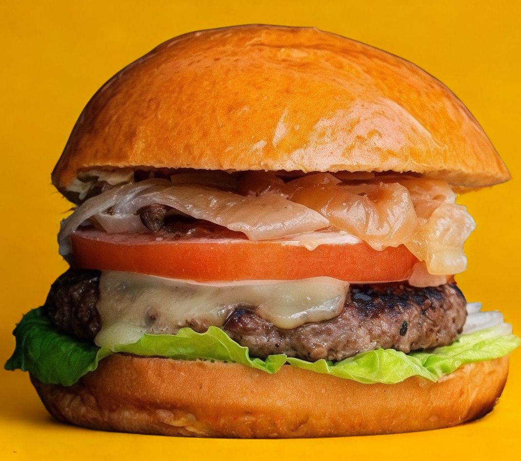 Pan vegano, mayonesa vegana, carne Beyond Meat, cebolla, lechuga y tomate. No incluye papas y bebida.