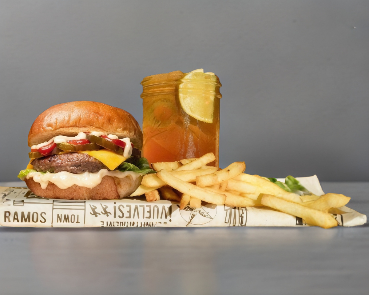 Con pepinillos, queso americano, catsup, carne de res y mayonesa. Elige entre diezmillo o pollo a la parrilla. No incluye papas y bebida.