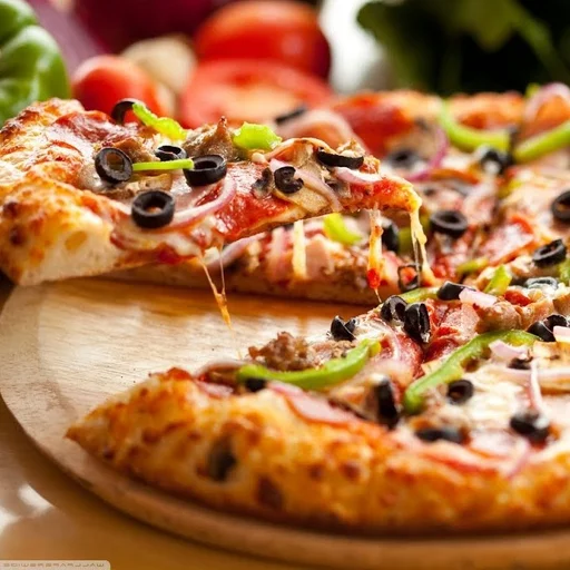 Peperoni, champiñones, pimiento verde, cebolla, aceitunas negras