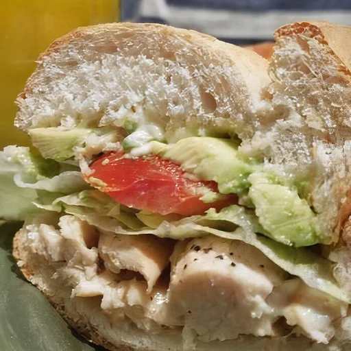 Pechuga de pollo a la plancha sazonada con especias, lechuga, tomate, cebolla, aguacate, aderezo ranch y catsup