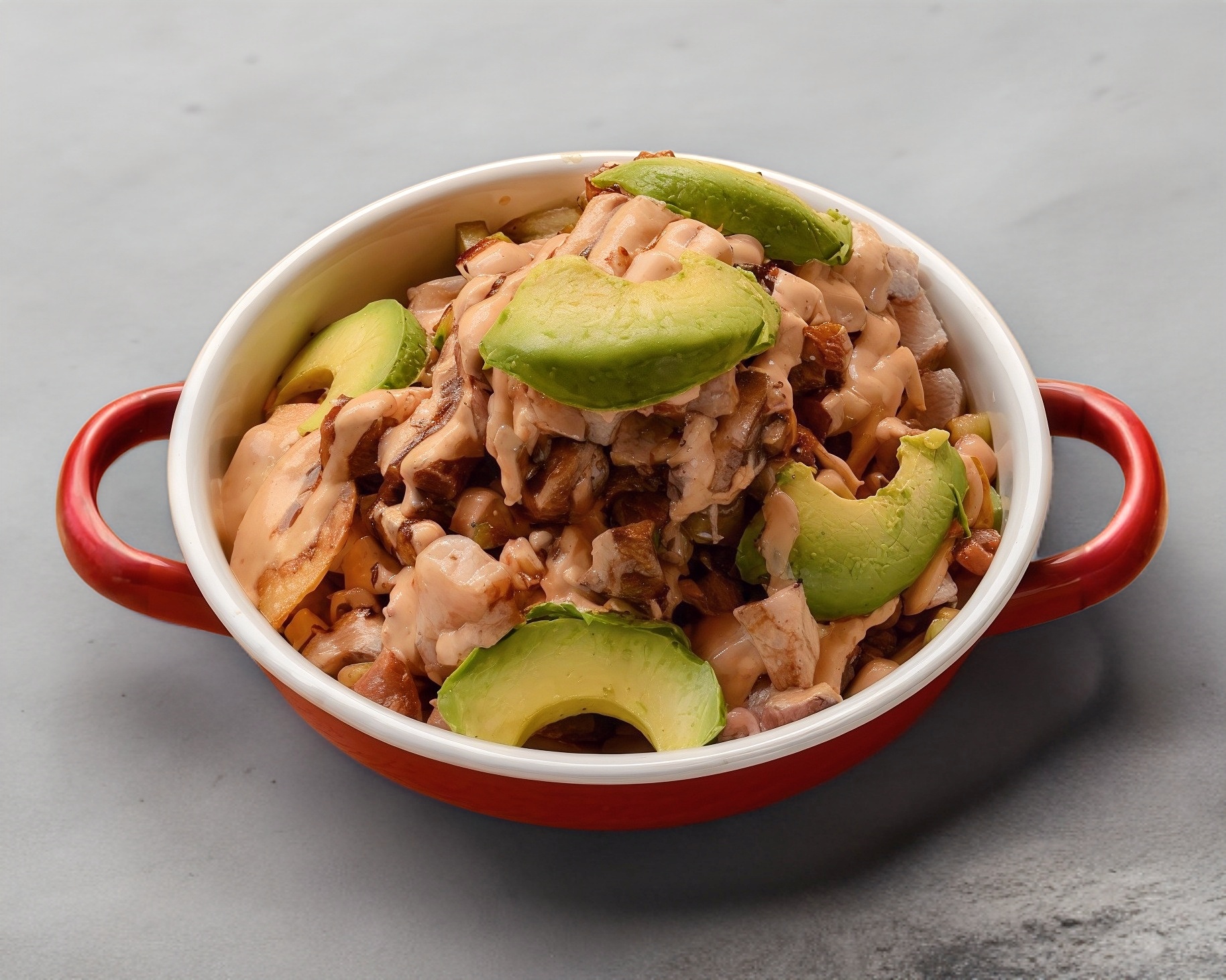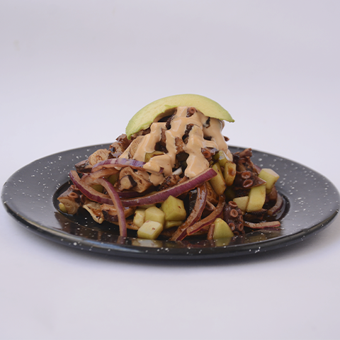 Sobre una base de alioli chipotle, atún, salsa 7 chile y aguacate.