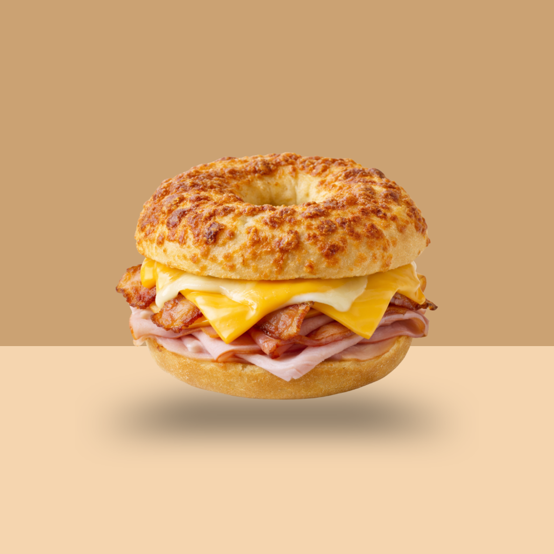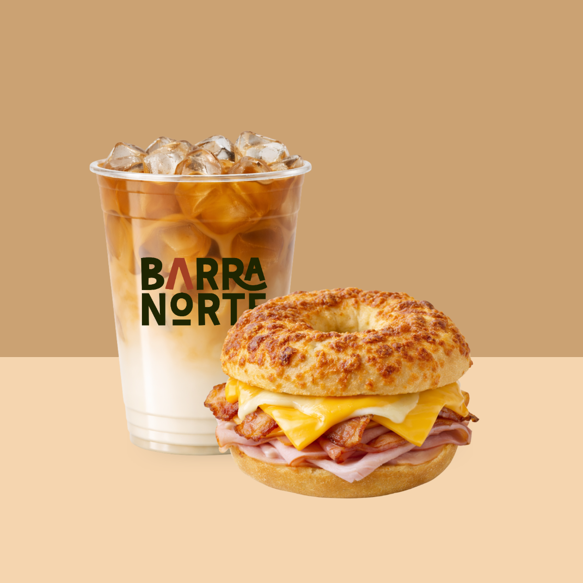 Bagel 3 Quesos y Tocino*1 + Latte Frío*1