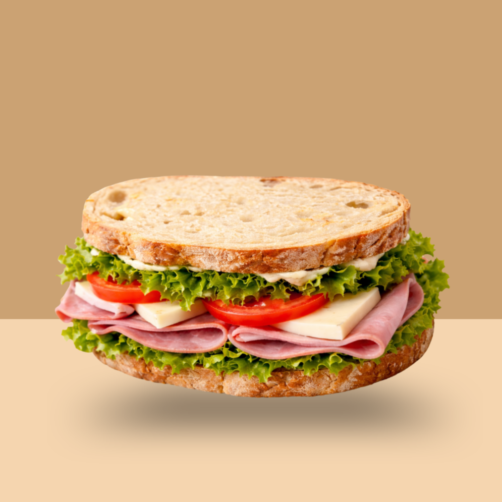 Pan de masa madre con jamón, queso panela, lechugas frescas y mayonesa chipotle de la casa.