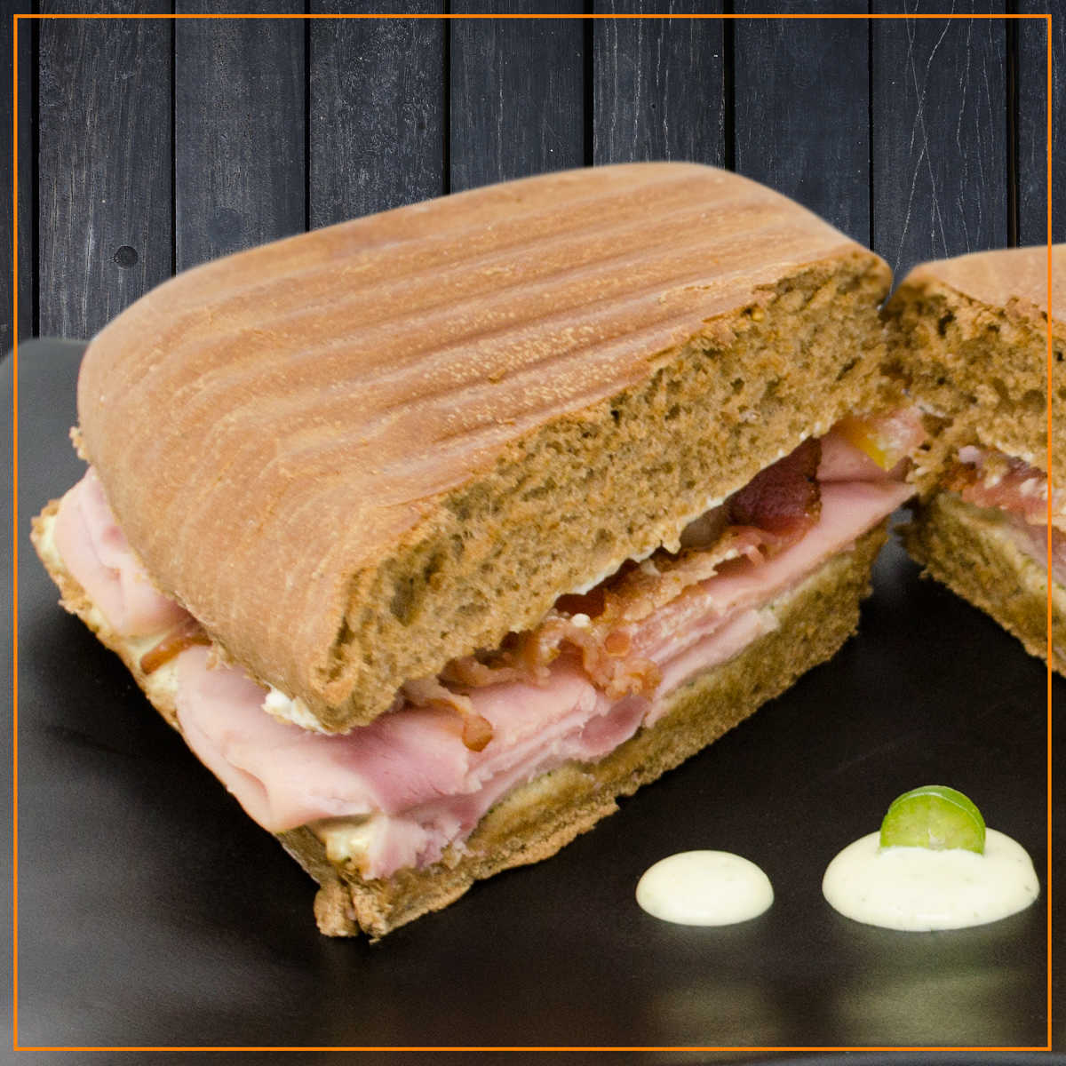 Jamón, mezcla de quesos de la casa, lechuga, tomate y aguacate.