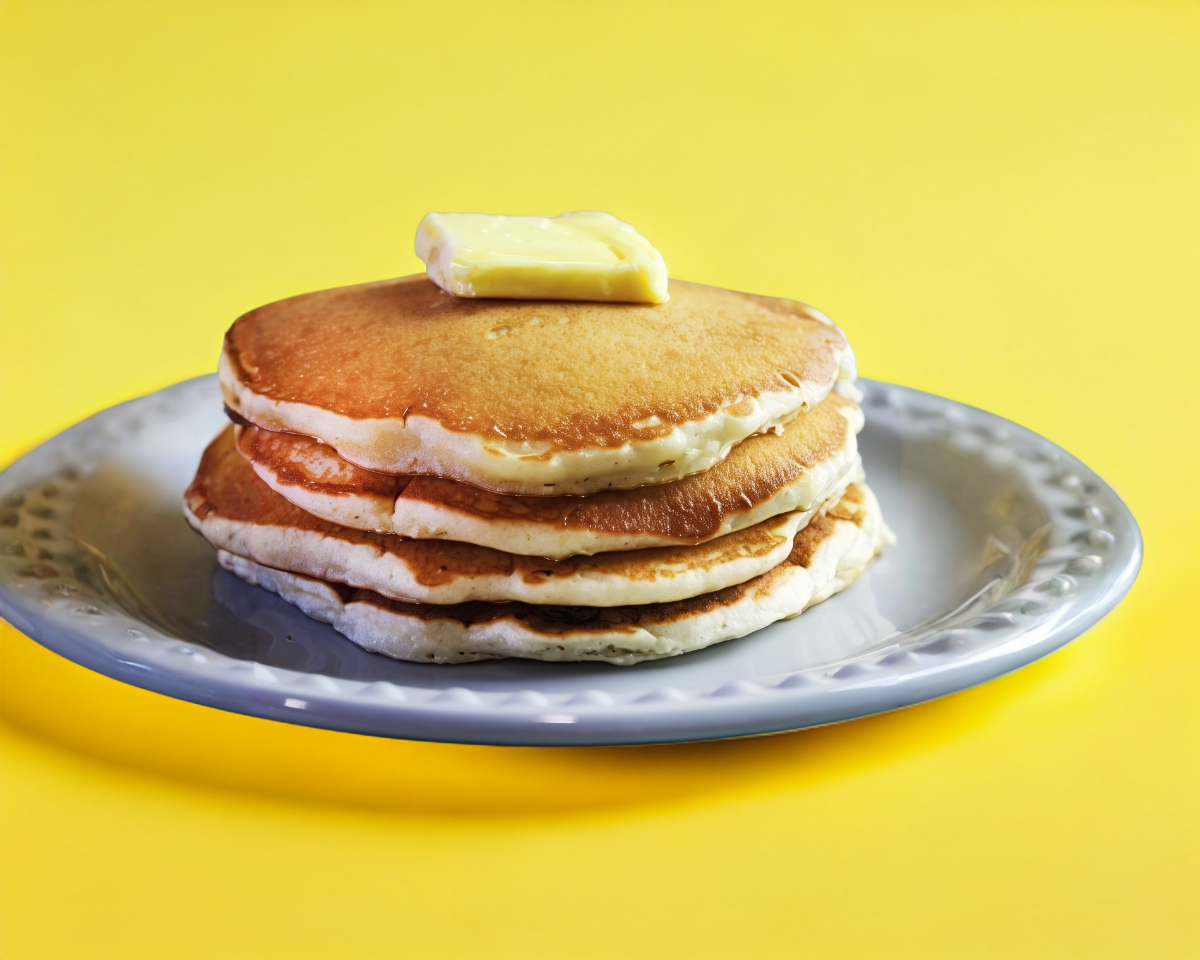 (3pzs) Esponjaditos, mantequilla, miel, tocino y fruta.