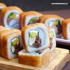 Rollo de sushi preparado con queso philadelphia, aguacate, camarón fresco y carne de res.