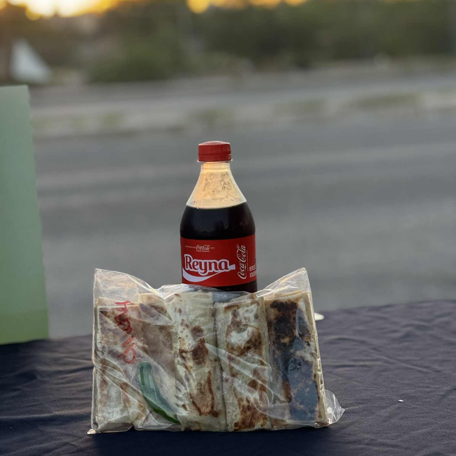 5 Burritos y Soda(3 de Papas Con Chorizo, 2 de Frijol)