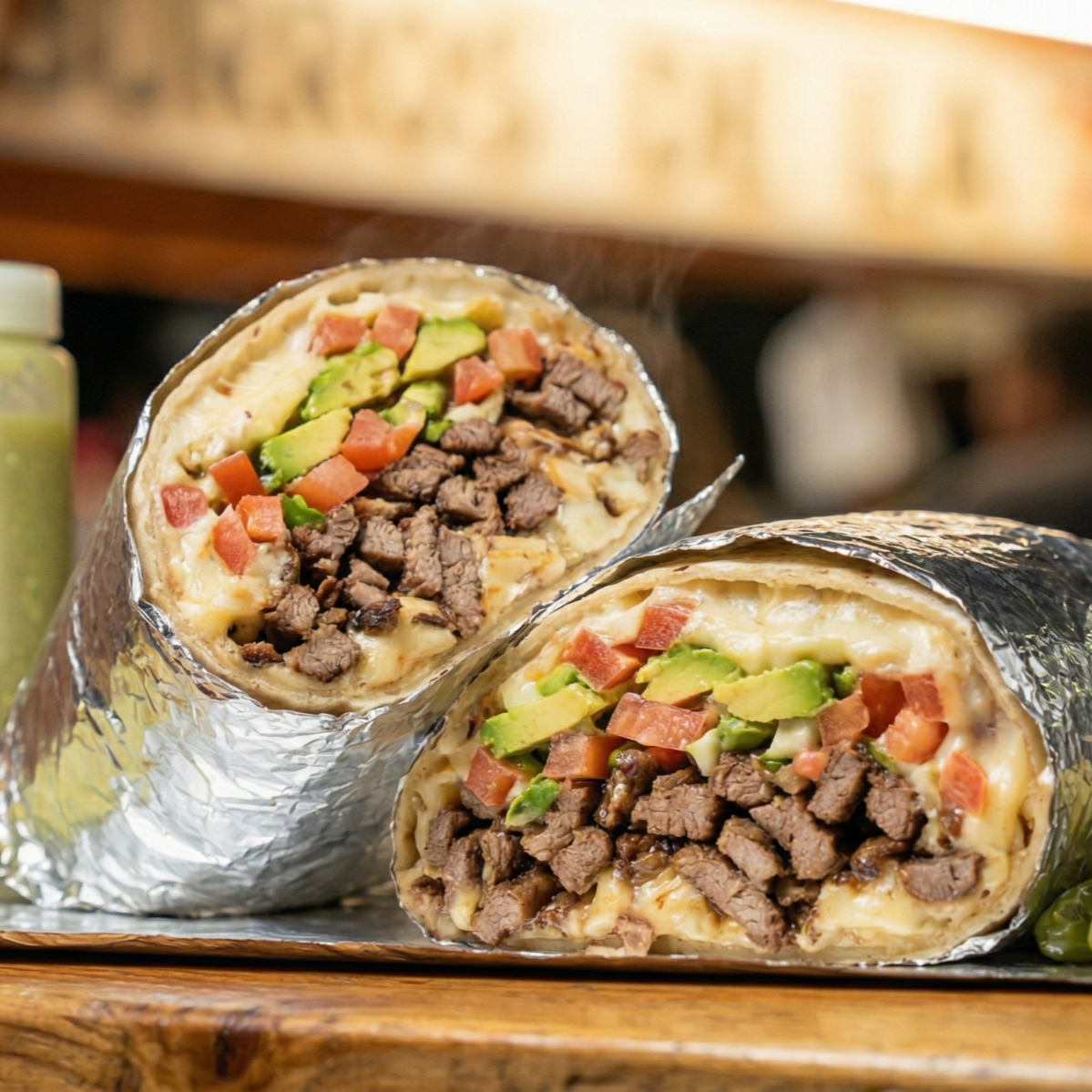 Carne de res y adobada, wakamole, tomate y queso menonita.