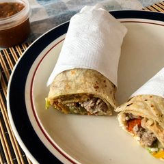 Tortil la gordita , carne asada, queso , verdura y salsas
