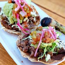 tortillas fritas , barbacoa , salsa verde , verdura y crema
