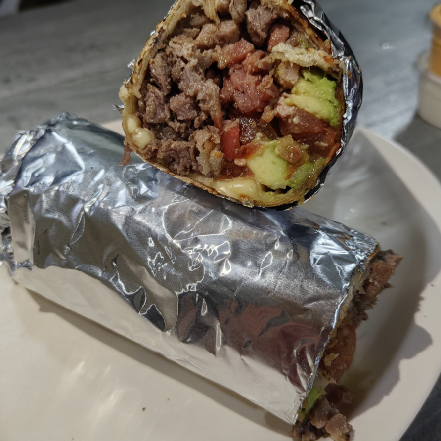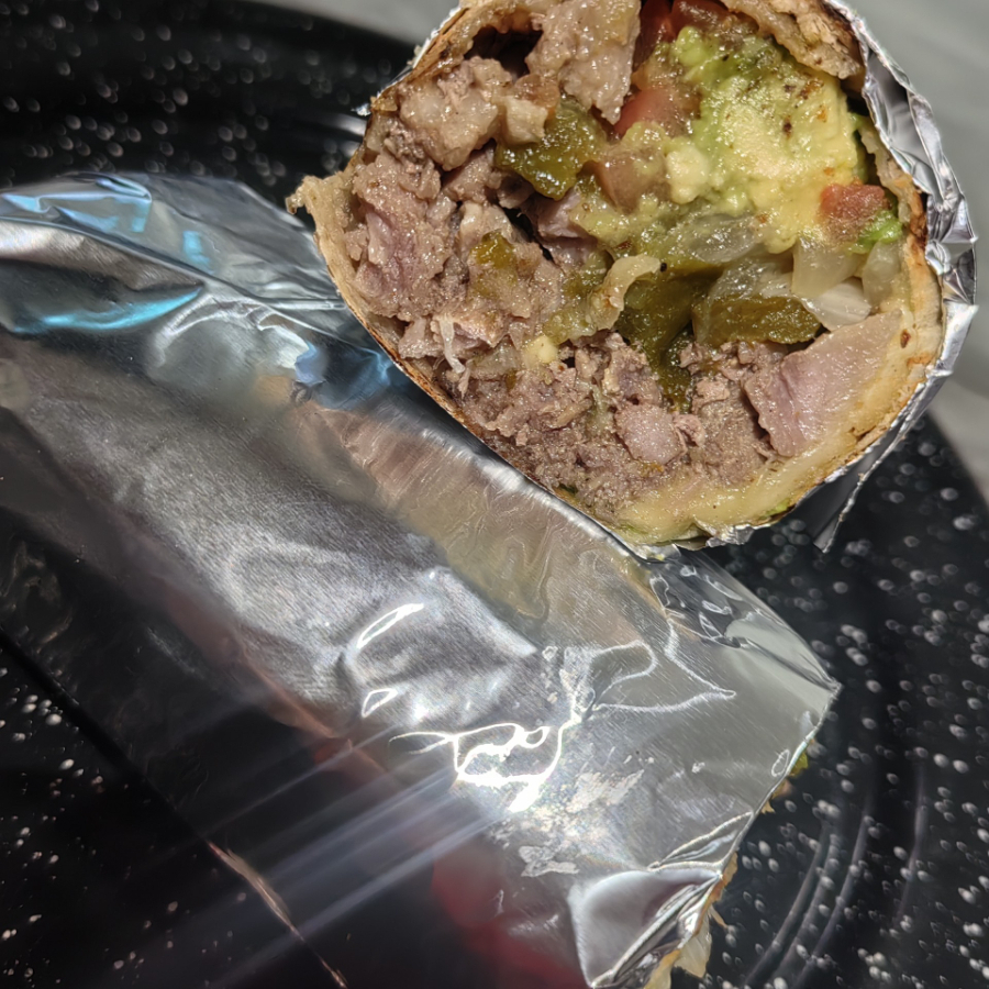 Carne asada,Guacamole (Tomate,cilantro,cebolla morada y limon) Queso y Tocino