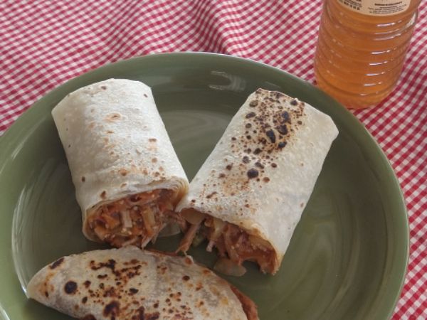 Burro de tortilla de harina. Sobaquera (con o sin frijol) y taquito de frijol de tortilla gordita de regalo.