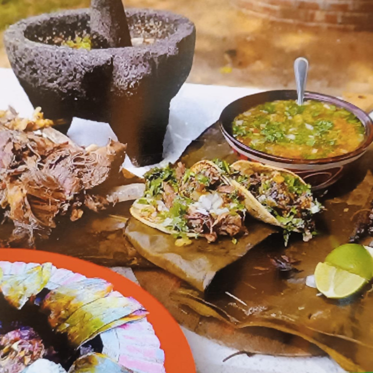 BARBACOA DE BORREGO ESTILO HIDALGO COCIDA EN HORNO DE LEÑA Y CARBON EN HOJA DE PLATANO 1 KG INCLUYE SALSAS, VERDURAS Y TORTILLAS
