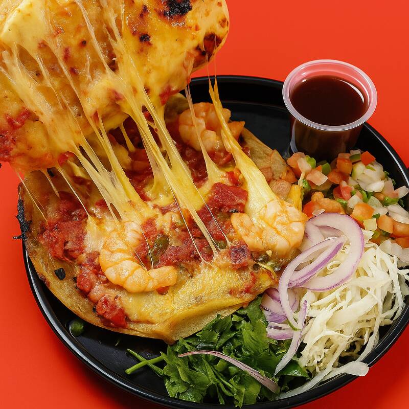 Quesadilla doble tortilla con camarón de maíz