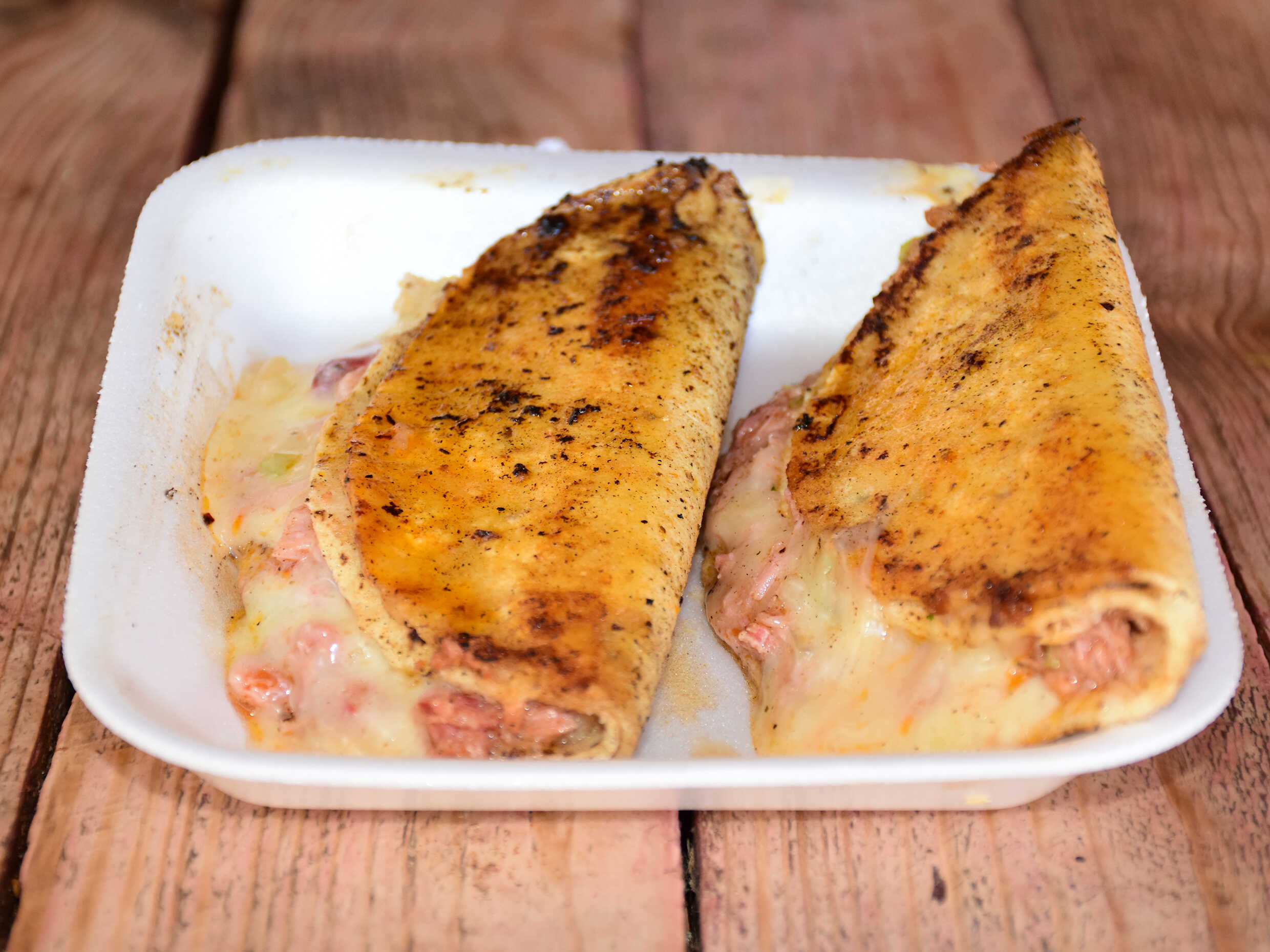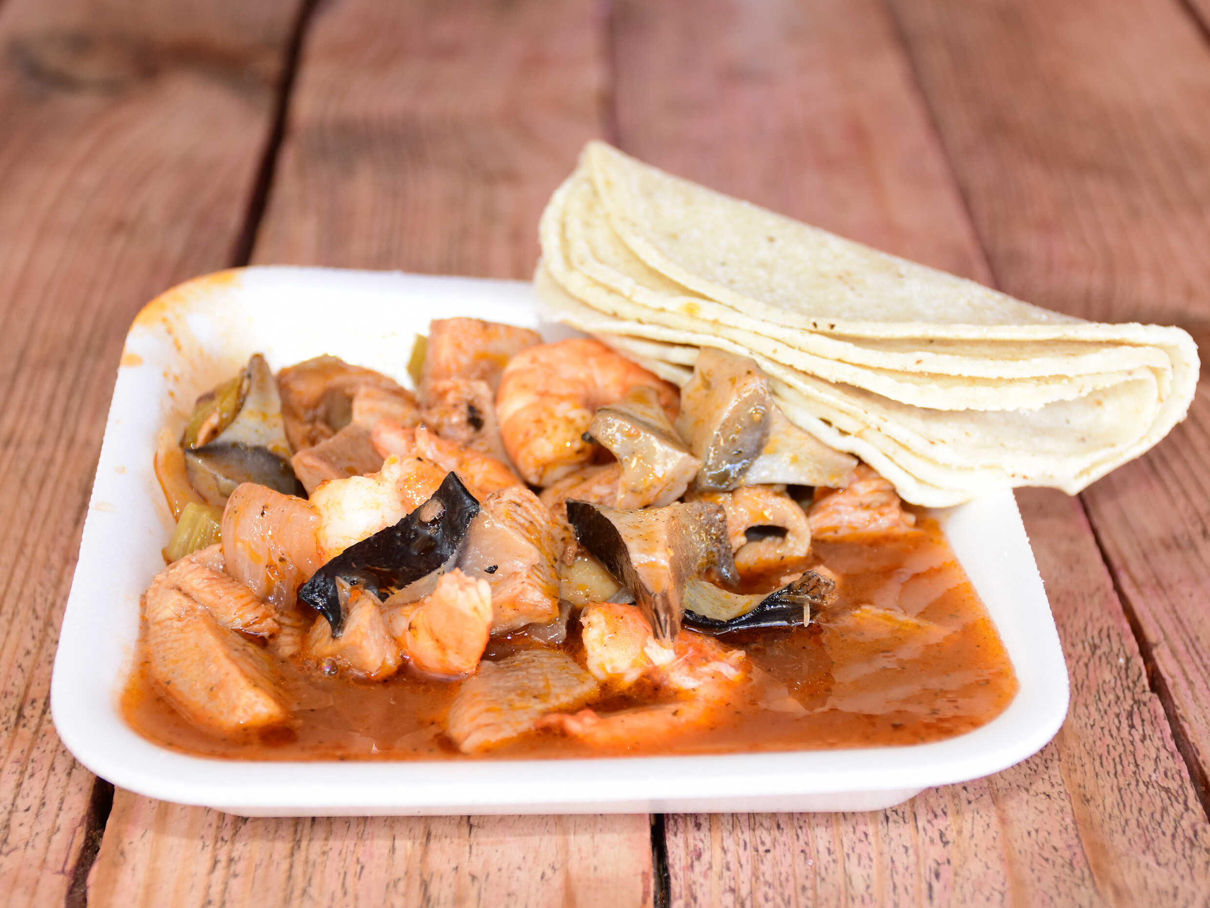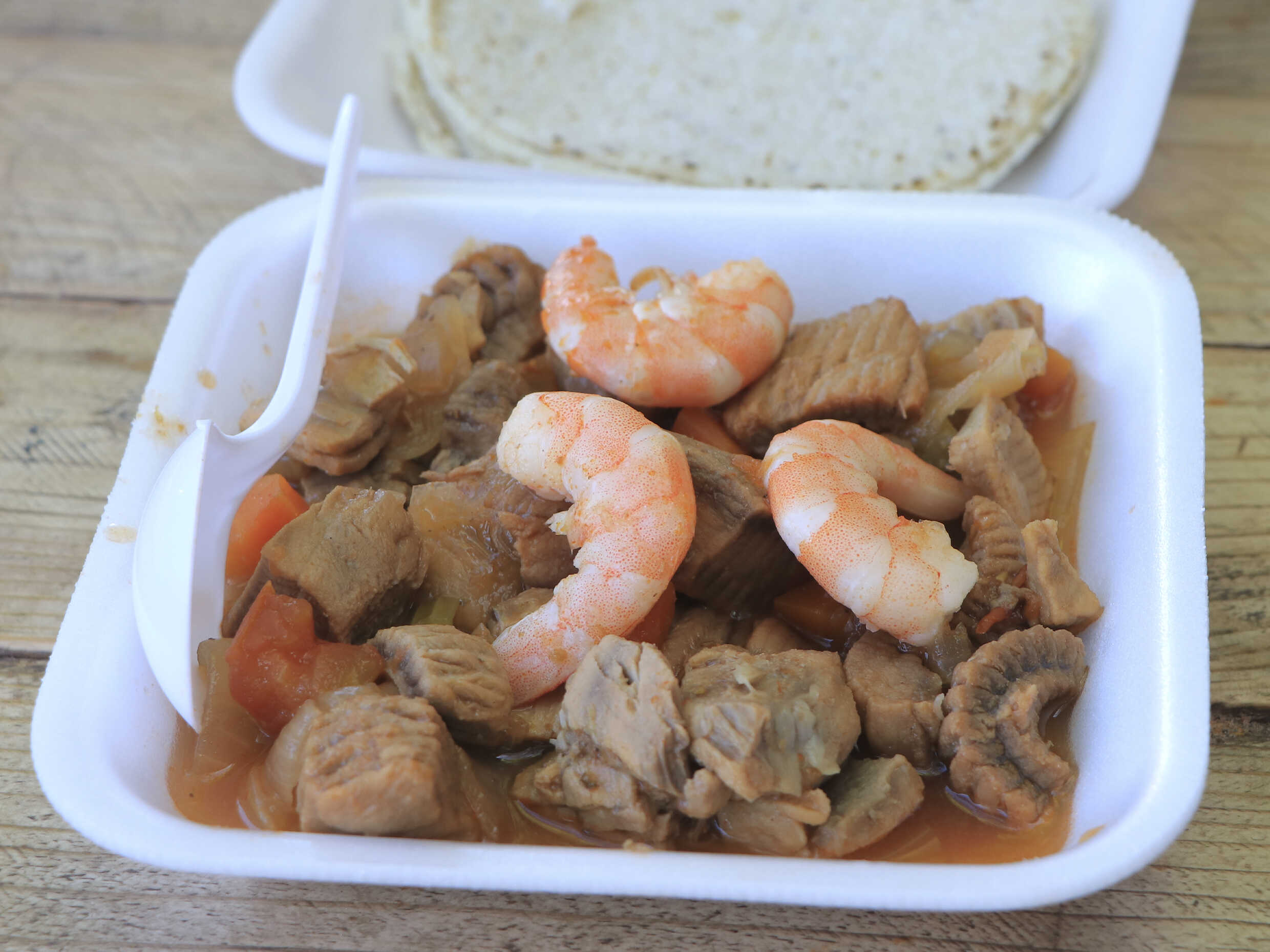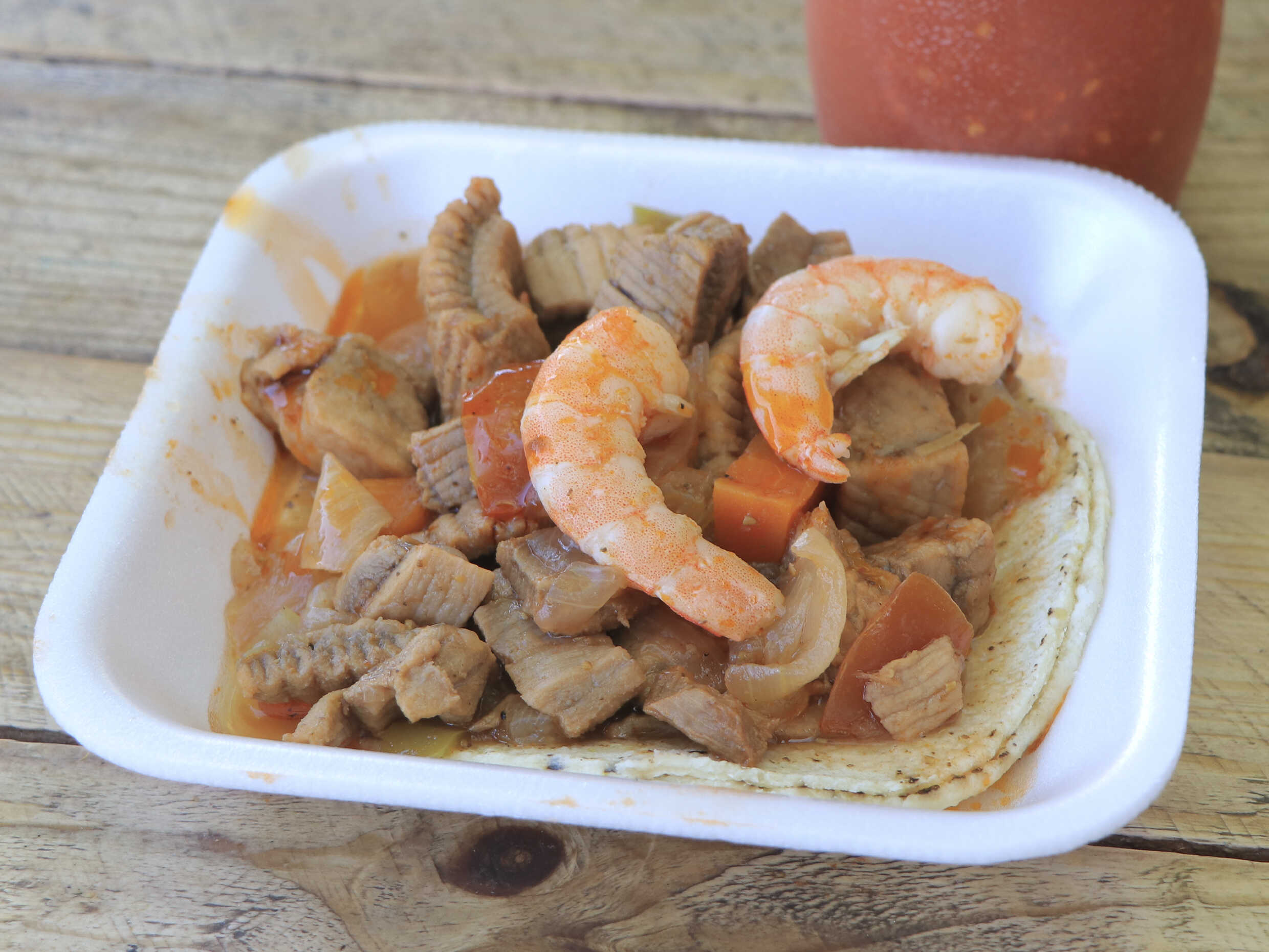 TACO VOLTEADO CON CAMARON Y MANTA