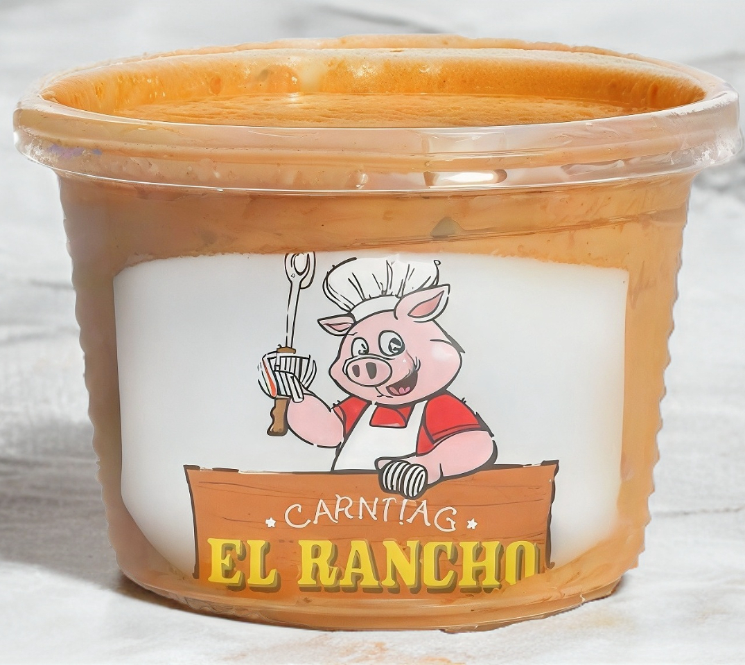 Acompañado de tortillas y salsas rojas.