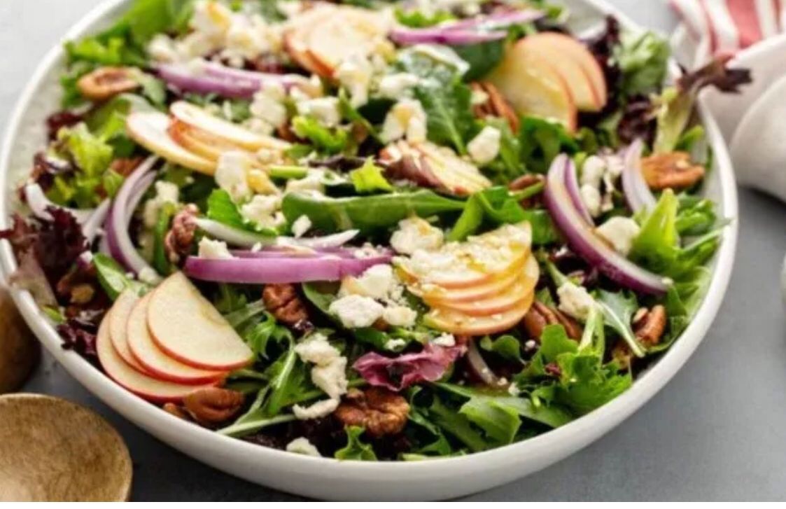 Espinaca, queso panela, arándanos, nuez, crotones, vinagreta dulce.