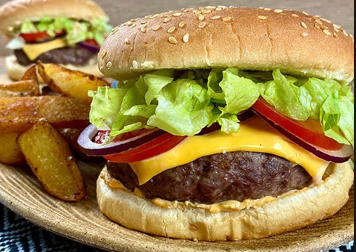 Carne de res o pollo, queso cheddar, lechuga, tomate, aguacate y cebolla, acompañadas de papas a la francesa.