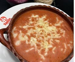 (500 ml) Fina juliana de tortilla, con el delicioso caldillo de jitomate, acompañada de su tradicional guarnición de queso, aguacate, chile y crema.