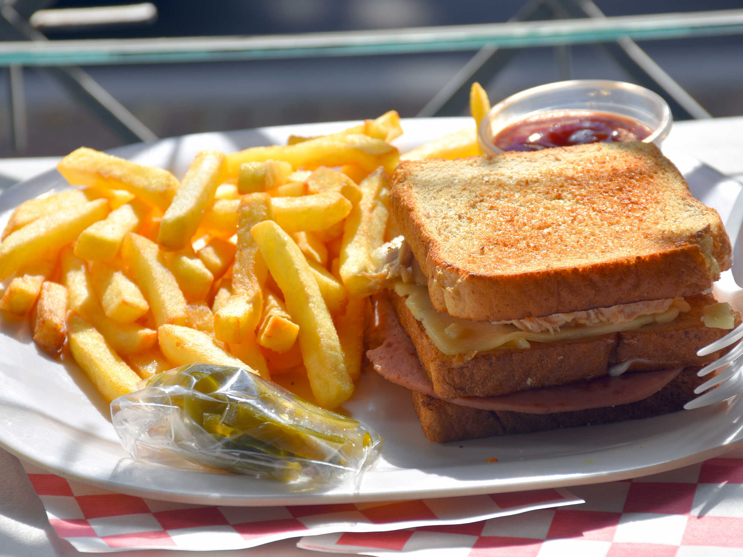 Sándwich Club con Papas