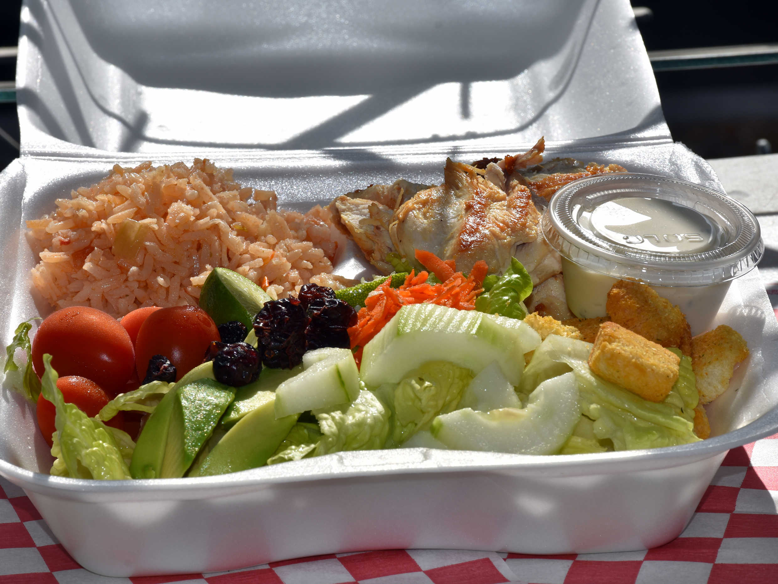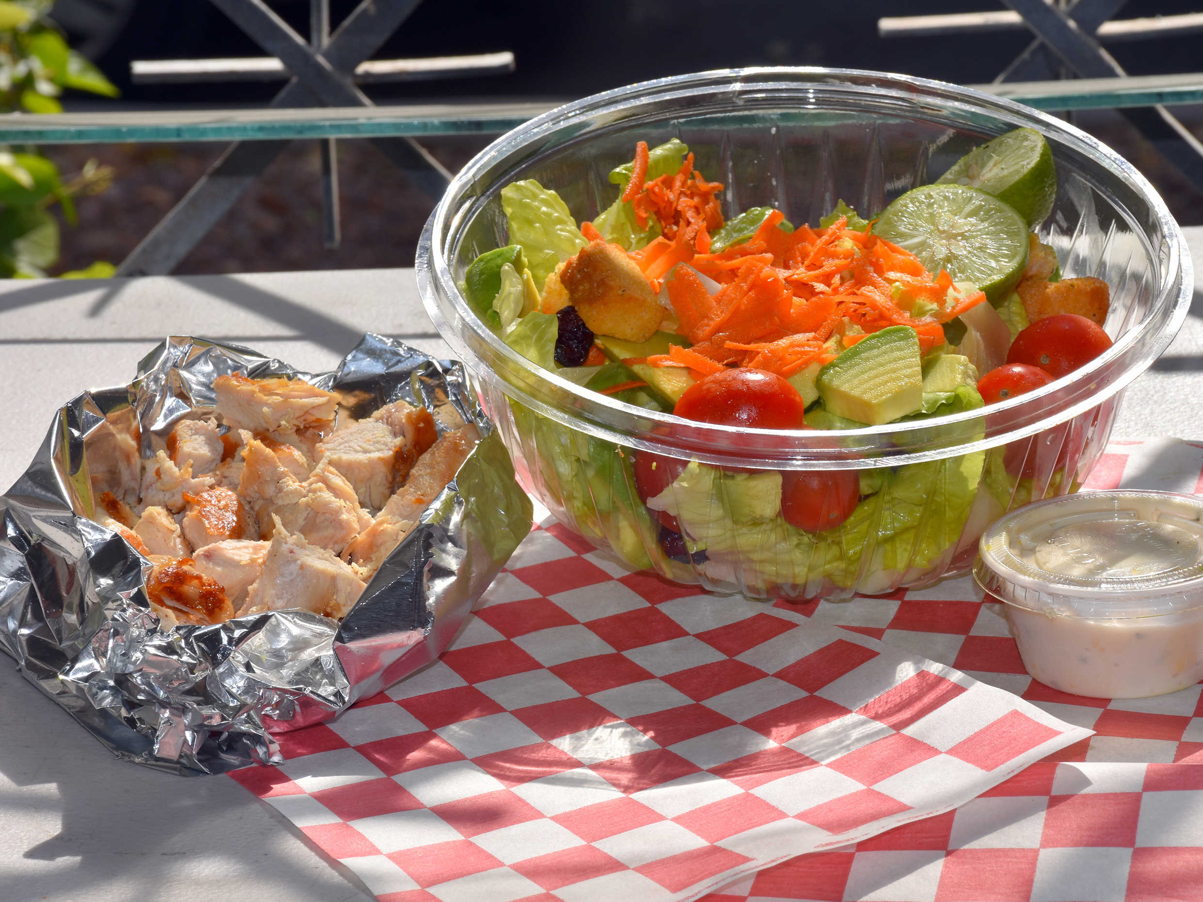 Ensalada chica de pechuga de pollo a la plancha y aderezo ranch.