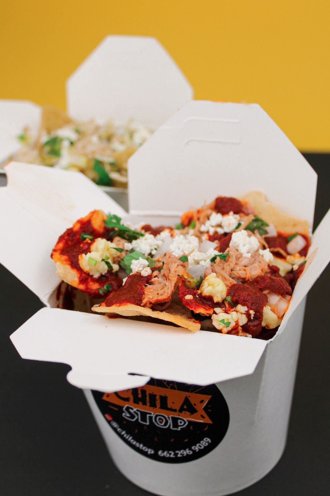 Aprox. 100g de totopos, 85g de Barbacoa y 8oz de salsa a elegir y queso chihuahua