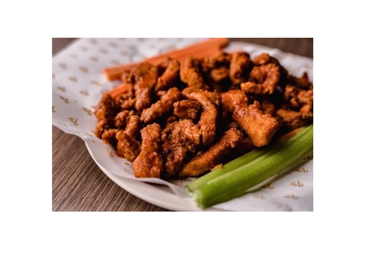 1.5kg de alitas en salsa de su elección, acompañado de tiras de zanahoria y apio. 4onzas de aderezo