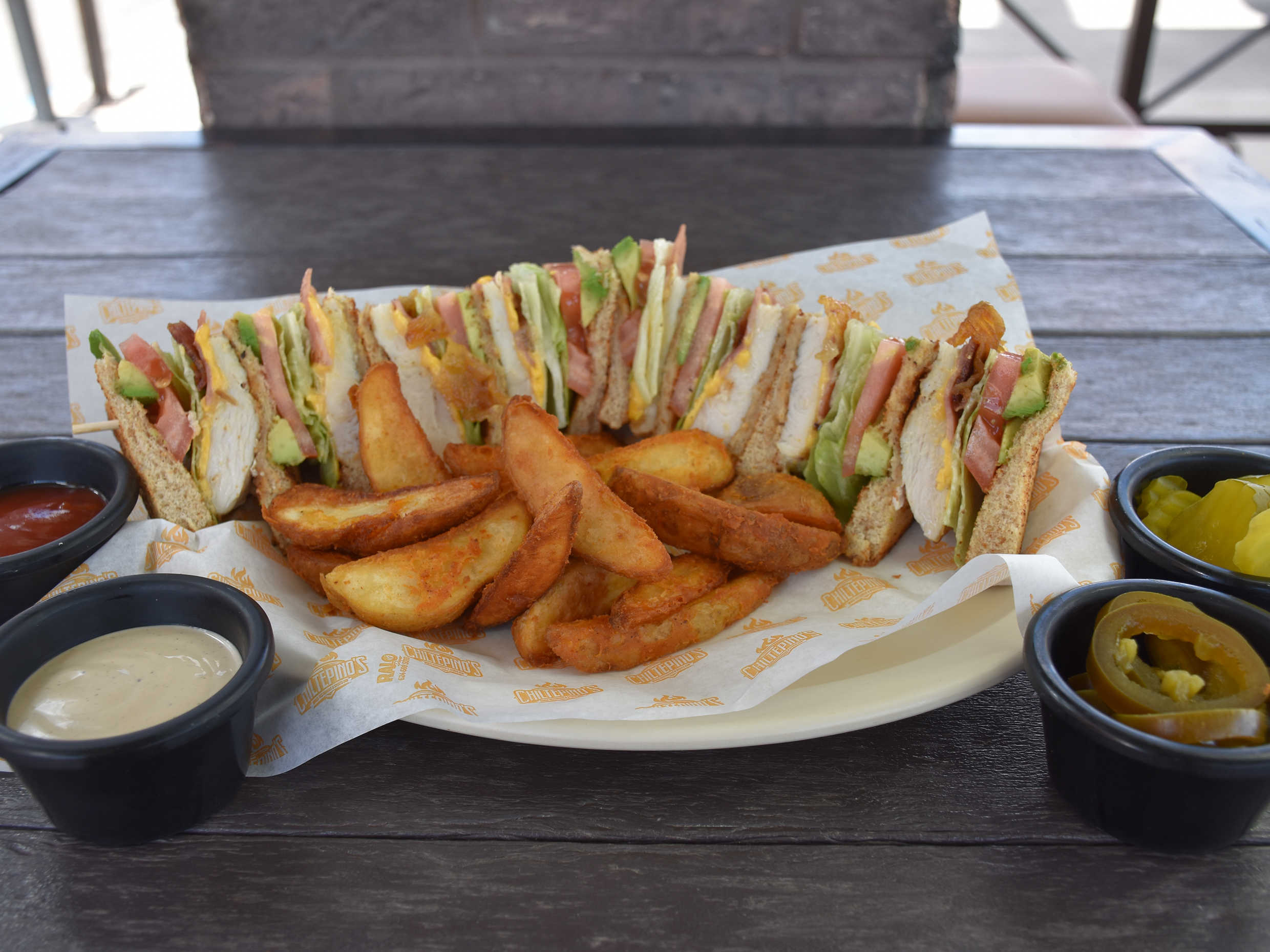 ¡DOBLE SABOR! 400 gr de 100% carne de res con doble queso amarillo, doble jamón, doble tocino, tomate, lechuga y aguacate... OPCIÓN DE POLLO 340 gr. $215.. (con aros de cebolla, papas a la francesa ó sazonadas)